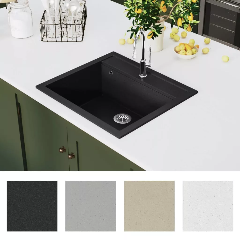 Gránit mosogatótálcánk kortalan kiegészítője lesz konyhájának. Egy extra mély medencével rendelkezik, és letisztult megjelenéssel bír. A kiváló minőségű gránitnak köszönhetően a mosogató hőálló, karc- és ütésálló és rendkívül könnyen tisztítható. A szállítás egy szűrőkosarat is tartalmaz, mely felfogja a nagyobb törmelékeket. A gyermekeket felügyelni kell, hogy ne játsszanak a készülékkel. Tartsa távol a gyerekeket az összeszerelési területtől. Figyelem: Használat előtt figyelmesen olvassa el az utasításokat, és őrizze meg további hivatkozás céljából.
