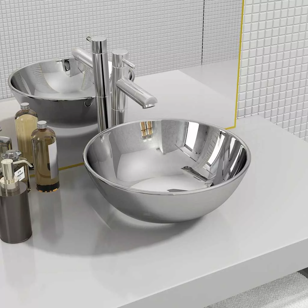 ezüstszínű kerámia mosdókagyló 28 x 10 cm