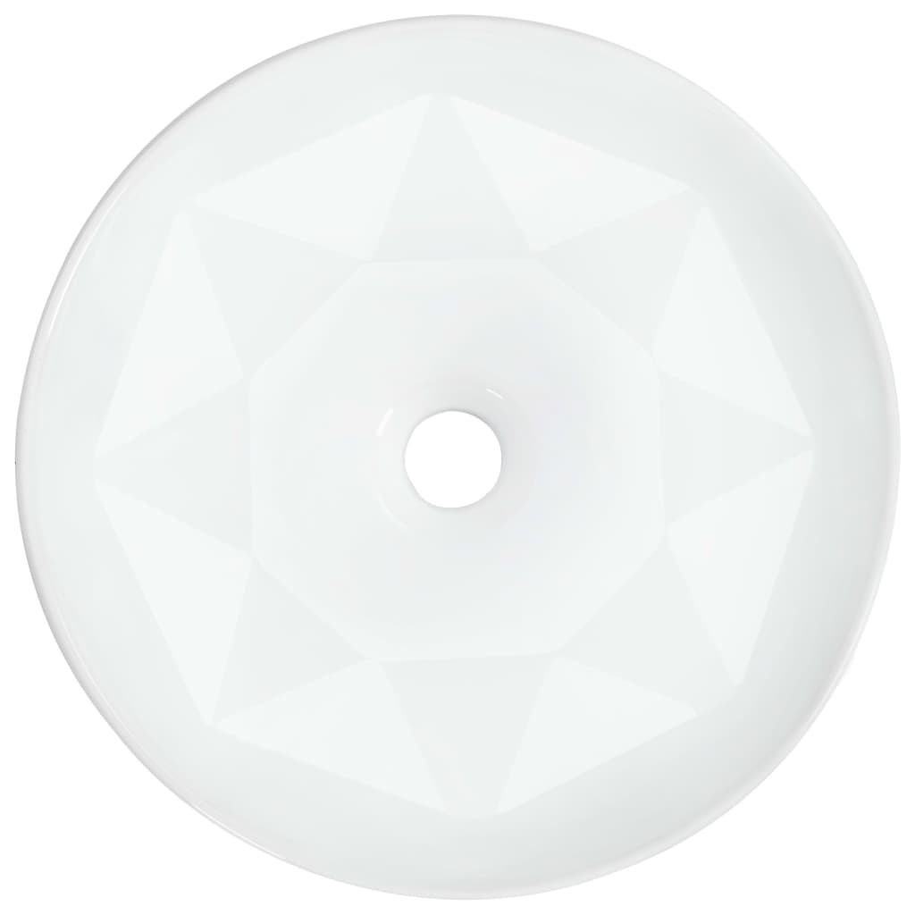 Kerámiából készült, így ez a kerek, gyémánt dizájnnal ellátott mosdókagyló bármely fürdőszoba, mosókonyha, öltöző vagy pipereszoba sikkes és időtlen kiegészítője lehet. A mosdókagyló nemcsak napi használatra alkalmas, hanem élettere remek éke is lehet. Trendteremtő, modern kivitelezésének köszönhetően bárhová illeni fog. Kerámiából készült, így rendkívül könnyen tisztítható. Emellett fényes felszínének köszönhetően csipetnyi báj csillan meg rajta. Felhívjuk a figyelmét, hogy a csapot és a lefolyót nem tartalmazza a szállítmány. A gyermekeket felügyelni kell, hogy ne játsszanak a készülékkel. Tartsa távol a gyerekeket az összeszerelési területtől. Figyelem: Használat előtt figyelmesen olvassa el az utasításokat, és őrizze meg további hivatkozás céljából.