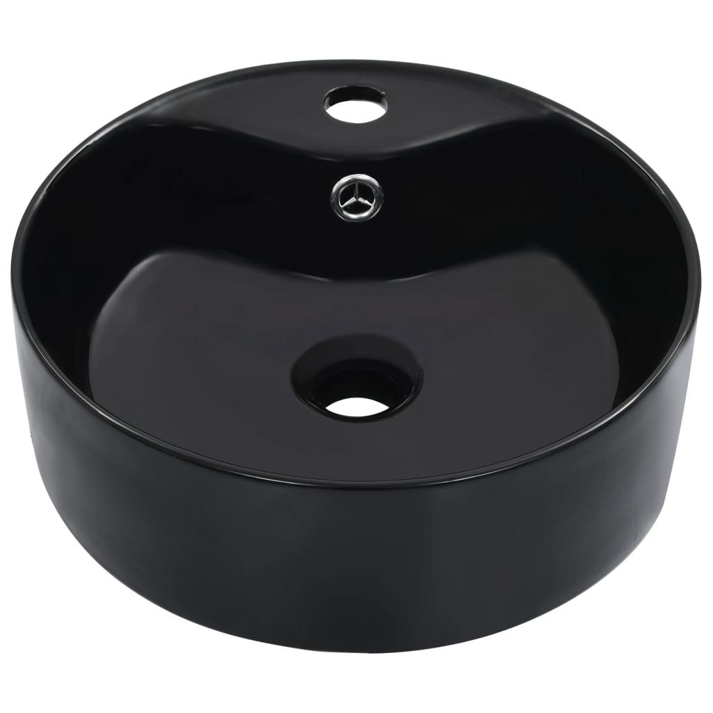 fekete kerámia mosdókagyló túlfolyóval 36 x 13 cm