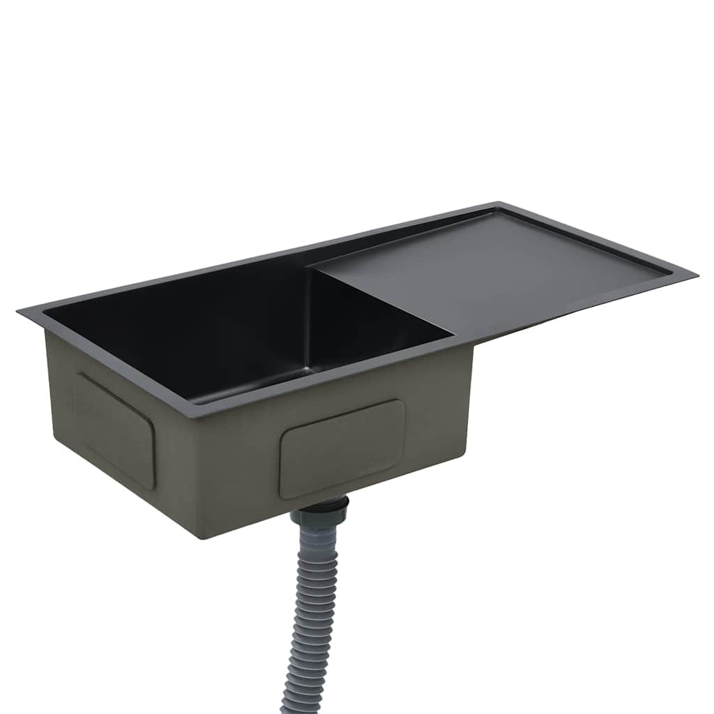 fekete kézzel készített rozsdamentes acél konyhai mosogató