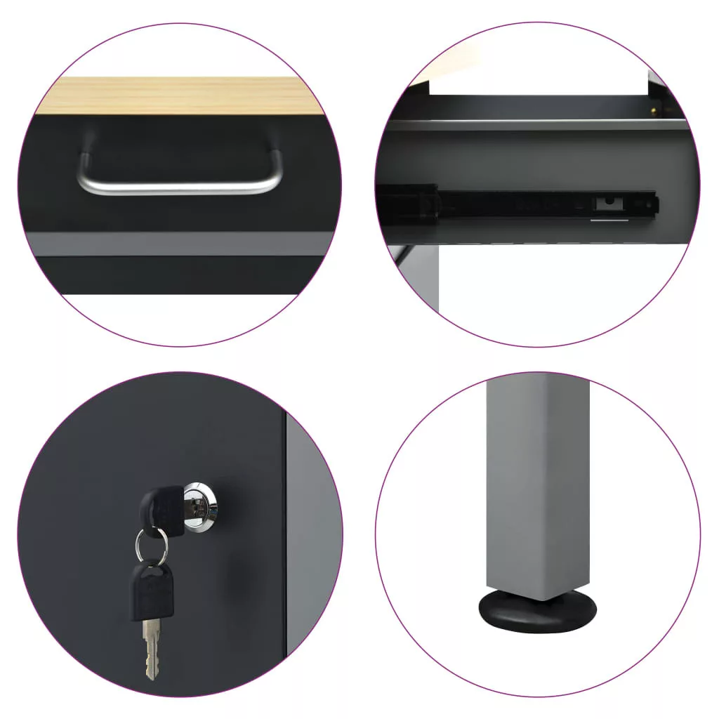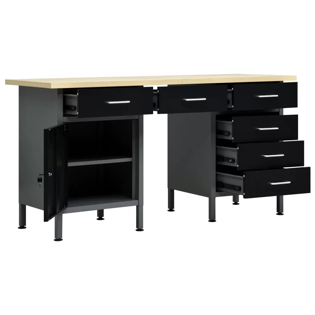 Ez a strapabíró munkapad bőséges tárolóhelyet biztosít; teherbírása 500 kg. Elengedhetetlen kiegészítője lesz műhelyének vagy garázsának. A nagy, masszív asztallap stabil helyet biztosít barkácsmunkáihoz. A munkapad 6 fiókkal lett ellátva, így rendszerezve tárolhatja különböző szerszámait, alkatrészeit és kellékeit, például csavarokat, szögeket és ragasztószalagokat. A fiókok golyóscsapágyas szerkezettel rendelkeznek, így könnyen kihúzhatóak. A nagyobb szerszámokat a zárható ajtós szekrényben tárolhatja, melyben könnyen helyet találhat fúróinak, kábeldobjainak és csiszolóinak. Ráadásul a lábak magassága állítható; a munkapadot oda teheti, ahol épp szüksége van rá, hiszen egyenes és egyenetlen talajon is stabilan áll. Ez a munkaasztal prémium minőségű acélból és szerelt fából készült, így rendkívül strapabíró, tartós és könnyen tisztítható. Összeszerelése egyszerű. A munkapad óriási segítséget jelent szereléshez vagy barkácsoláshoz!