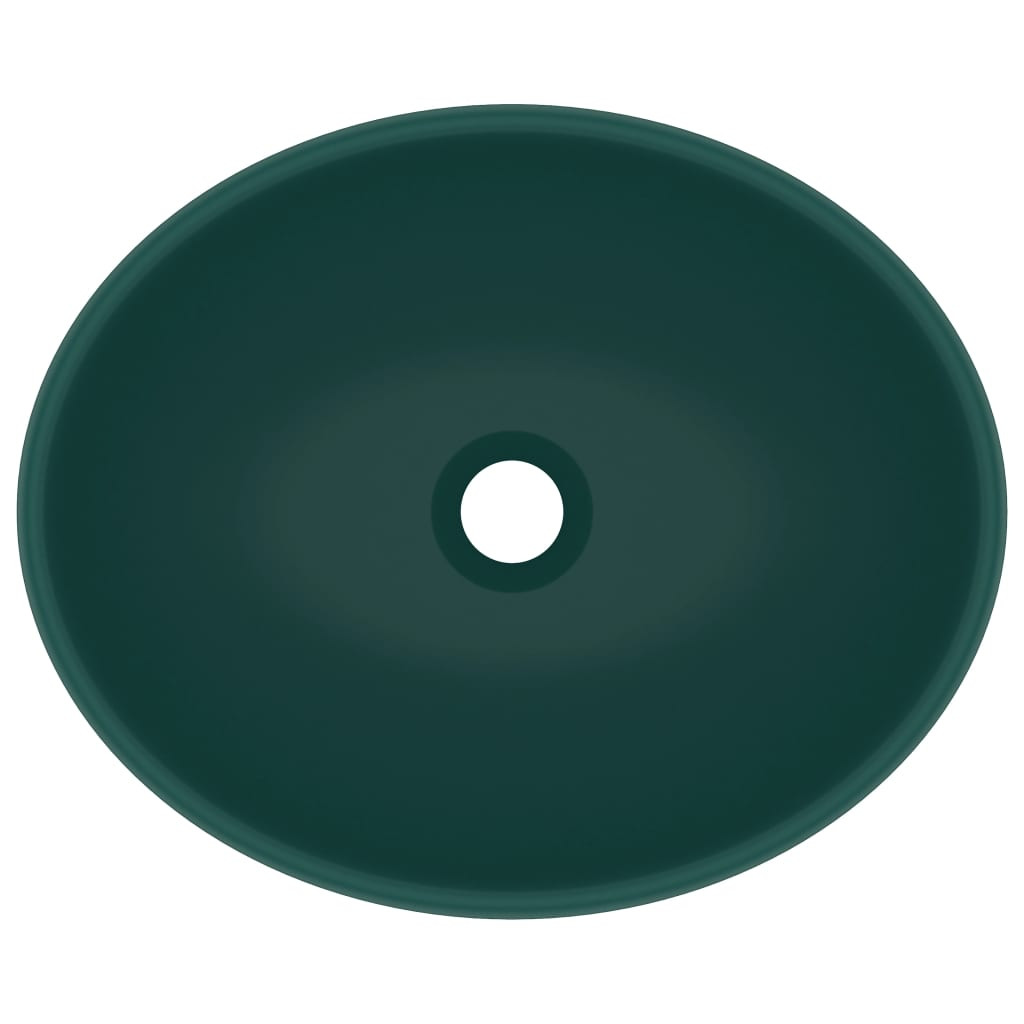 ovális matt sötétzöld kerámia luxus mosdókagyló 40 x 33 cm