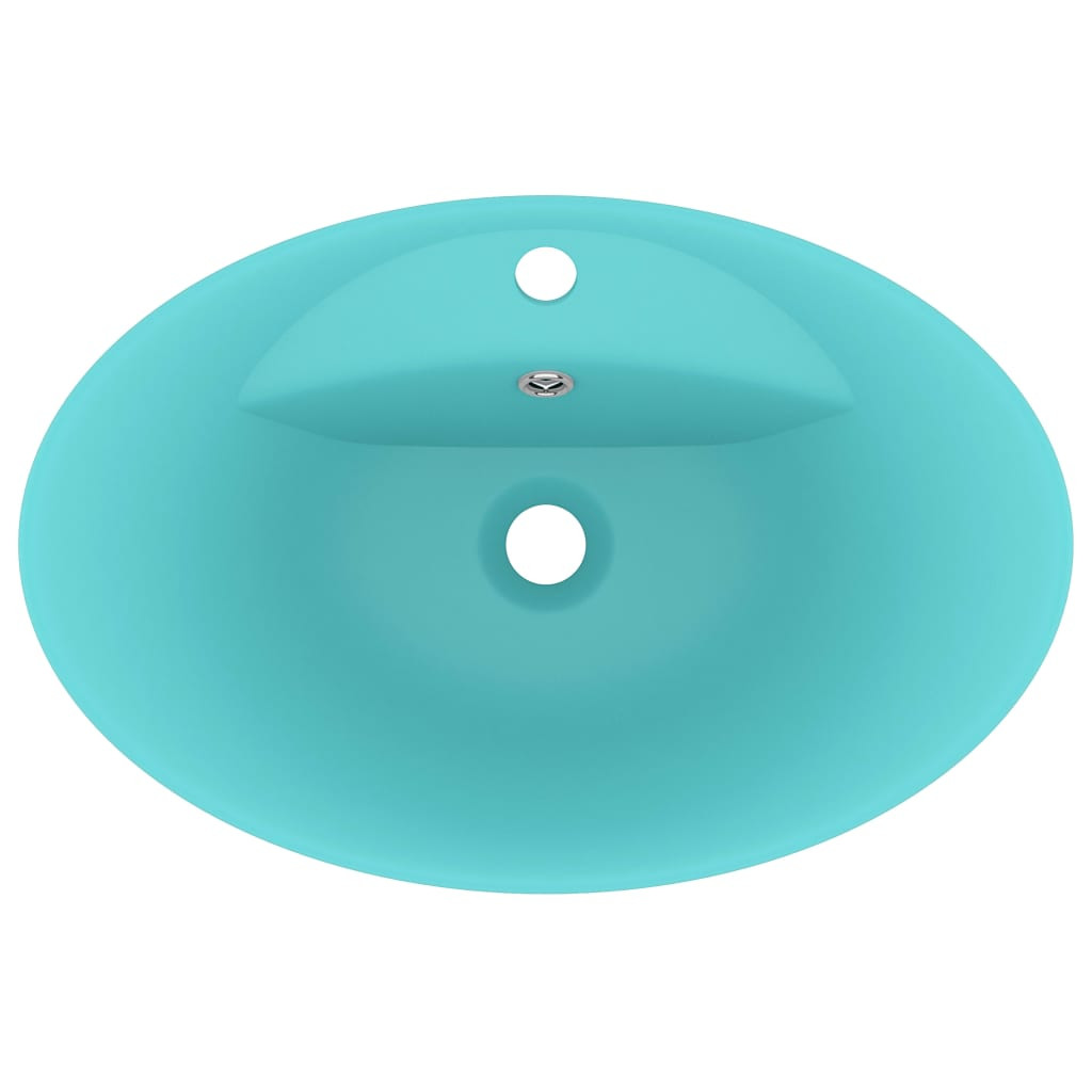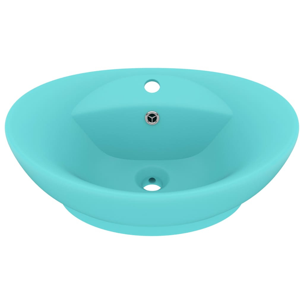 ovális matt világoszöld kerámia mosdó túlfolyóval 58,5 x 39 cm