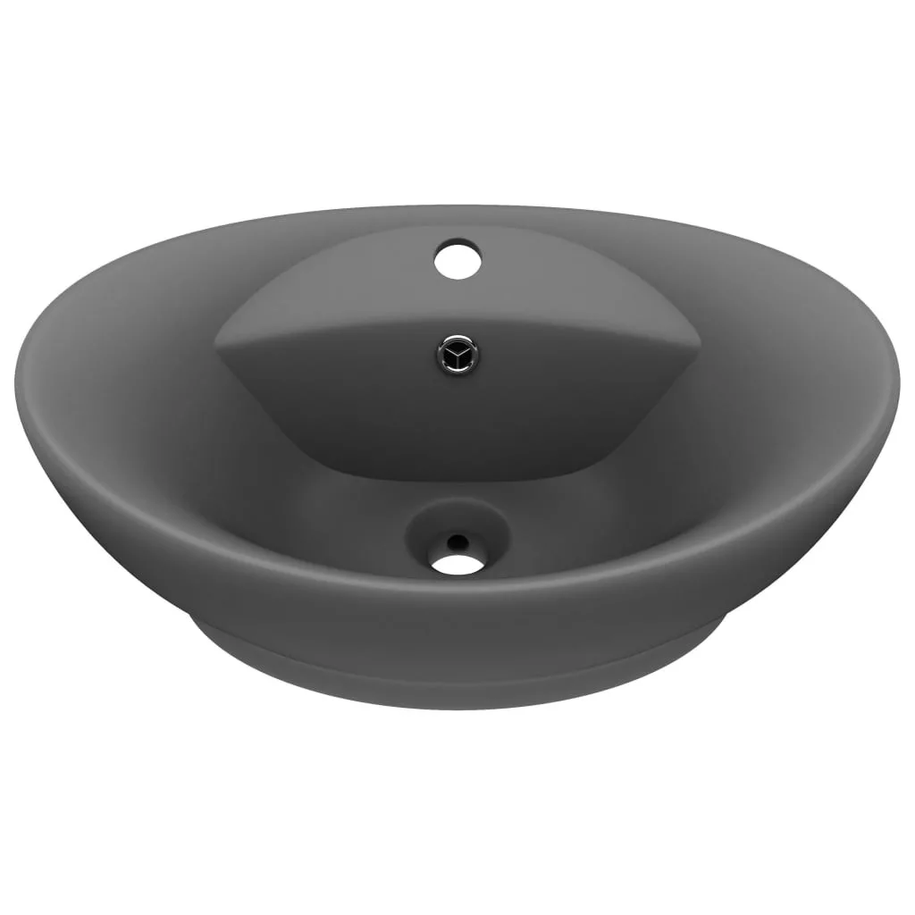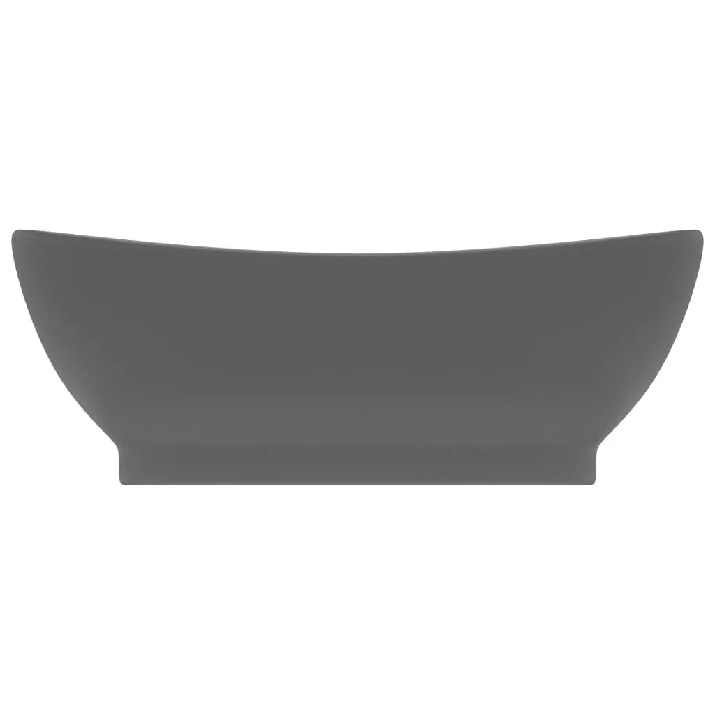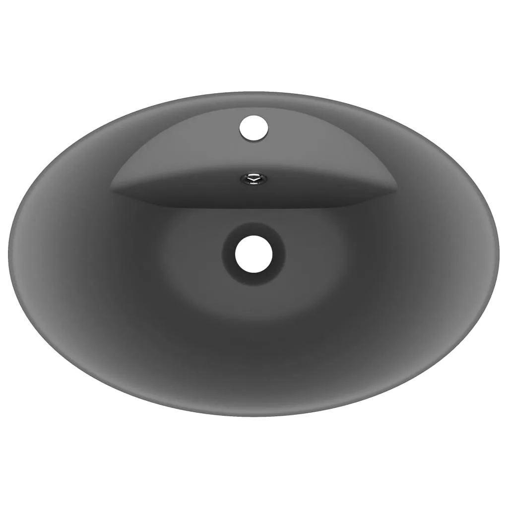 ovális matt sötétszürke kerámia mosdó túlfolyóval 58,5 x 39 cm