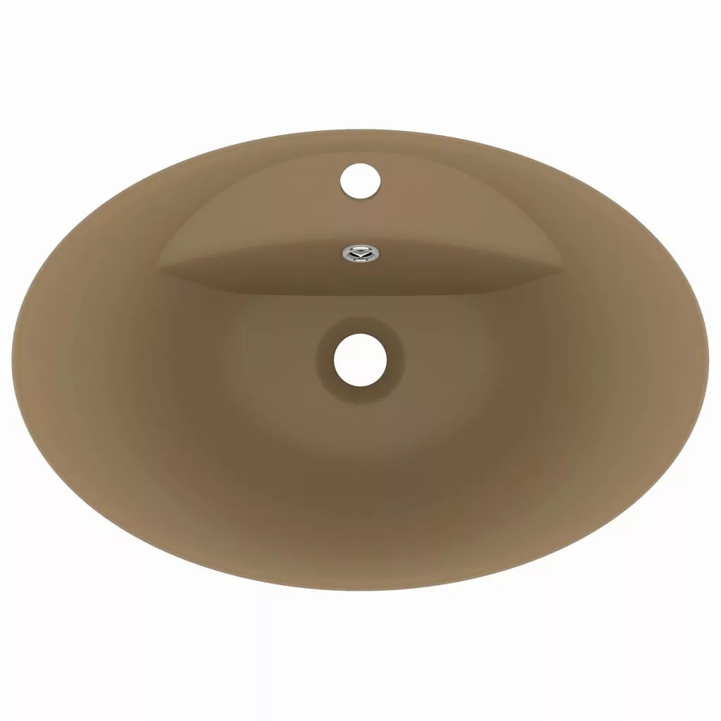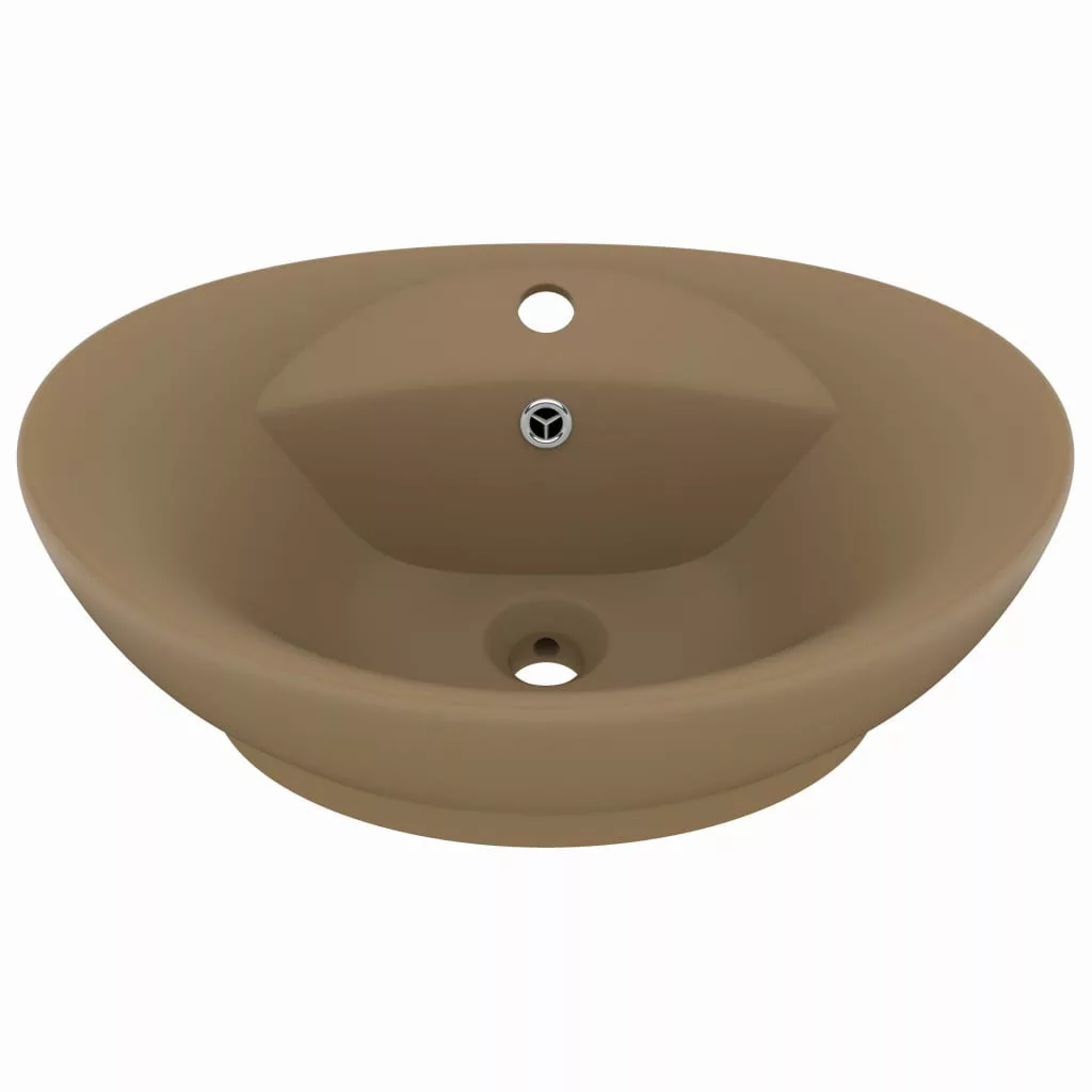 ovális matt krémszínű kerámia mosdókagyló túlfolyóval 58,5x39cm