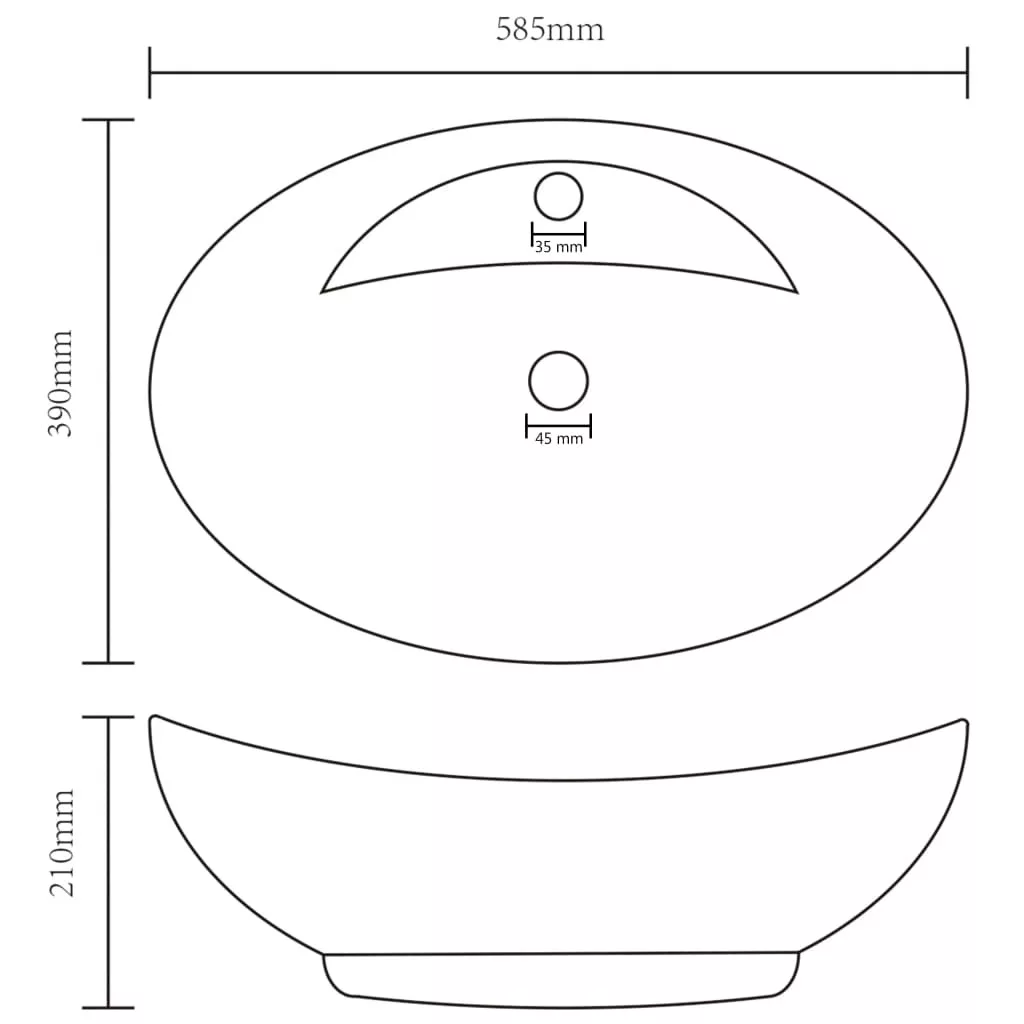Prémium minőségű kerámiából készült ovális mosdókagylónk bármely fürdőszoba, mosókonyha vagy mosdó stílusos kiegészítője lesz. Matt felülete és fényűző kialakítása modern, mégis elegáns megjelenést biztosít. Ez a művészi kialakítású kerámia mosdókagyló nemcsak egy praktikus tárgy mindennapi használatra, hanem környezete dísze is! Ez a matt mosdókagyló a fürdőszobakonzolra helyezhető, és használható a fürdőszobában, az öltözőszobában, a műhelyben, a konyhában vagy a munkahelyen is. Minden lakberendezési stílushoz illik. A túlfolyón keresztül a víz kifolyik, ha a mosdókagyló megtelt. A 3,5 cm-es csaptelepfurat már ki van alakítva. A lefolyónyílás 4,5 cm átmérőjű. Kérjük, vegye figyelembe, hogy a lefolyót és a csaptelepet a szállítmány nem tartalmazza. A gyermekeket felügyelni kell, hogy ne játsszanak a készülékkel. Tartsa távol a gyerekeket az összeszerelési területtől. Figyelem: Használat előtt figyelmesen olvassa el az utasításokat, és őrizze meg további hivatkozás céljából.