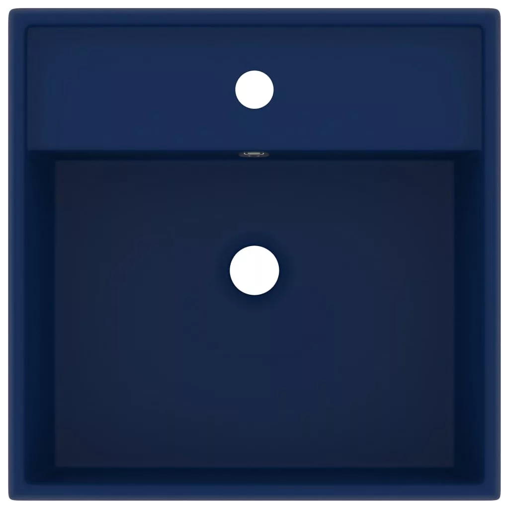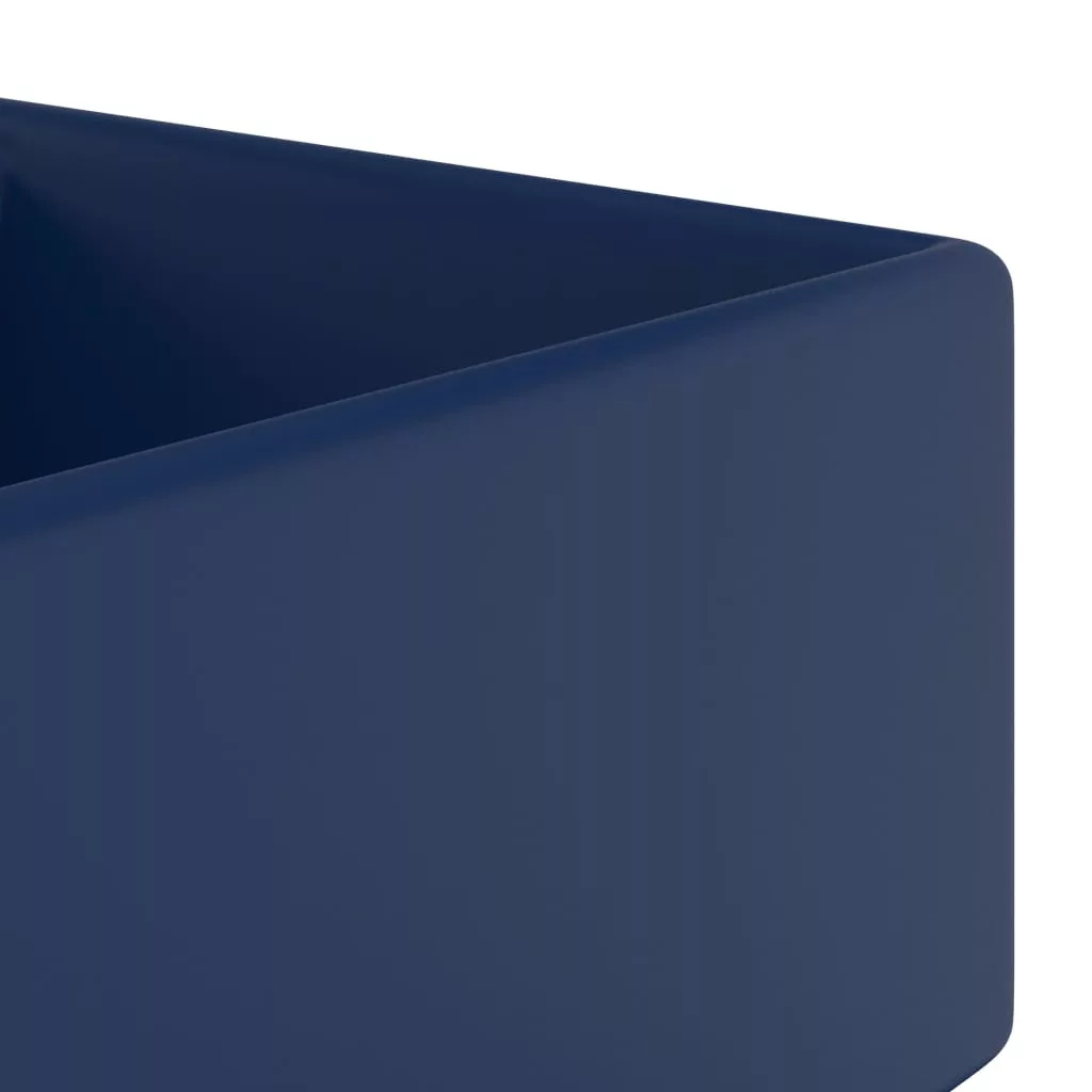 négyszög alakú matt sötétkék kerámia mosdókagyló túlfolyóval 41 x 41 cm