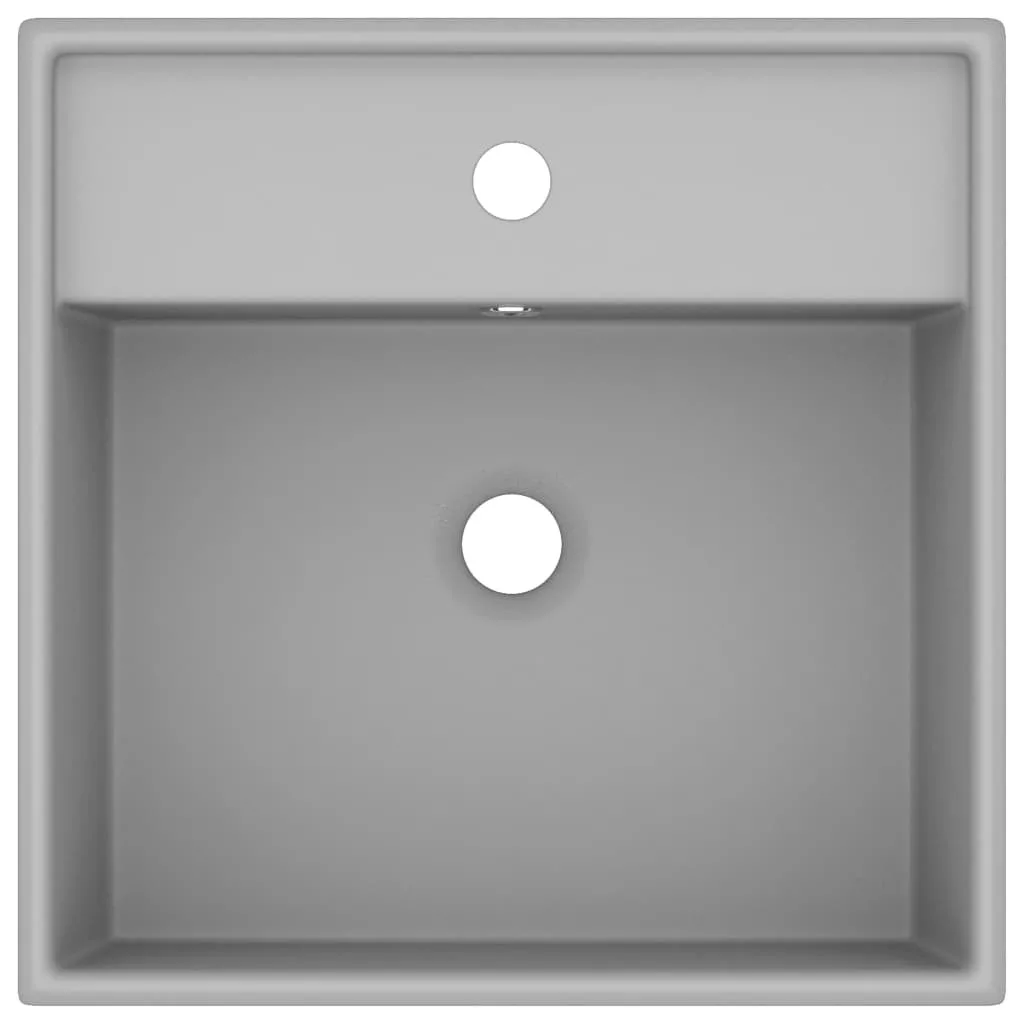 négyszög alakú matt világosszürke kerámia mosdókagyló túlfolyóval 41 x 41 cm