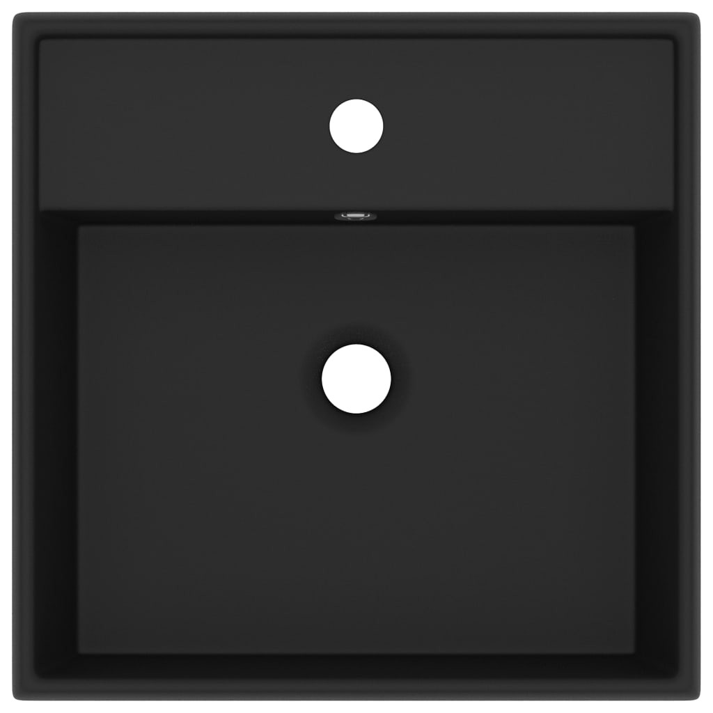 négyszög alakú matt fekete kerámia mosdókagyló túlfolyóval 41 x 41 cm