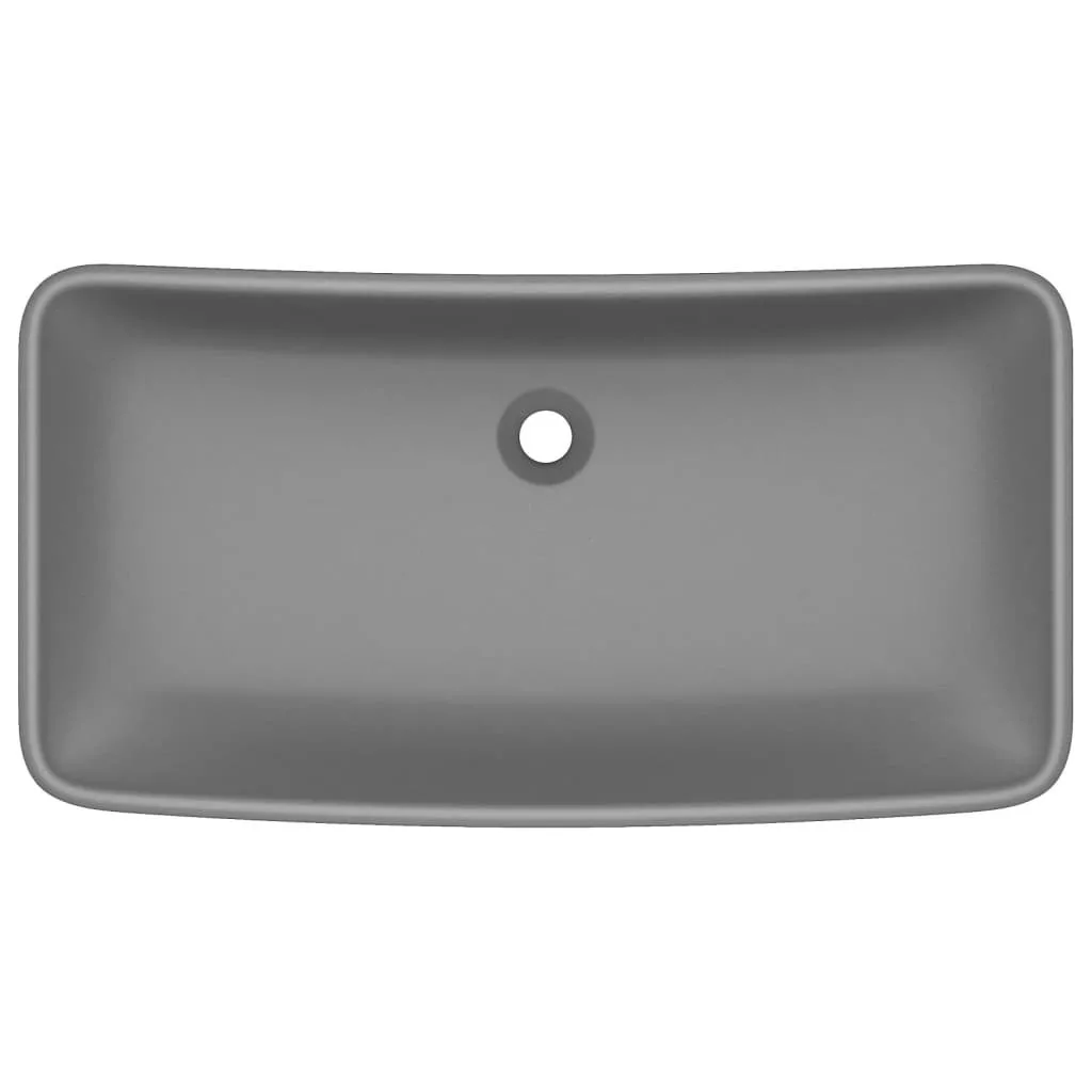 négyszögletes matt sötétszürke kerámia luxus mosdókagyló 71 x 38 cm