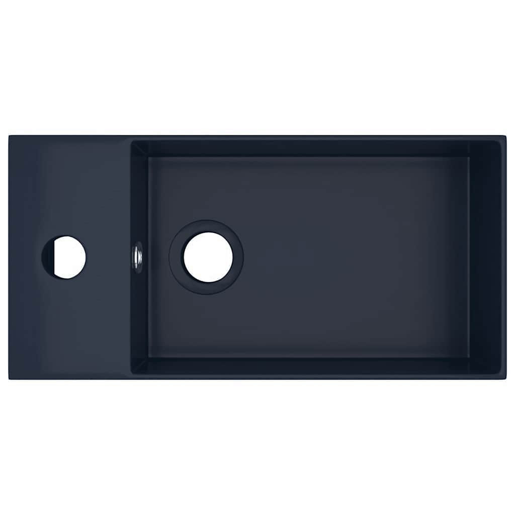 sötétkék kerámia mosdókagyló túlfolyóval