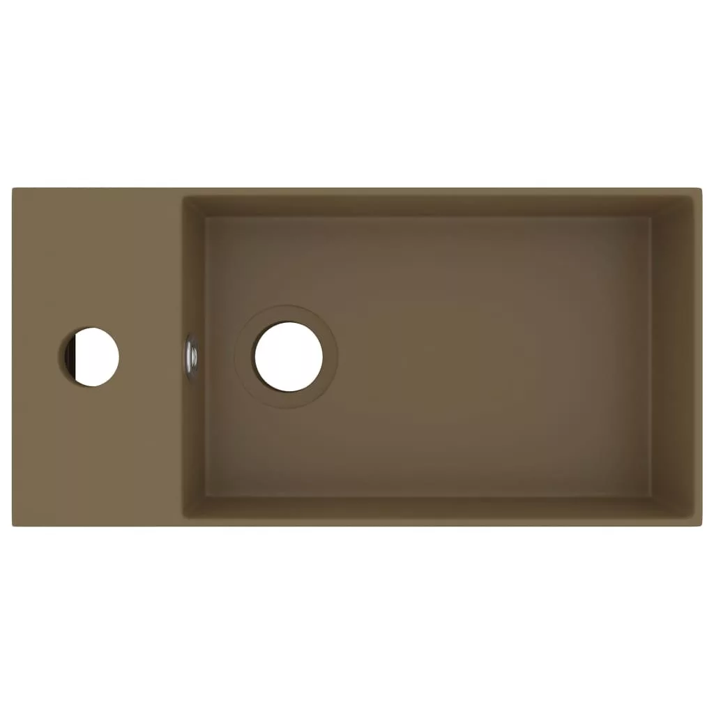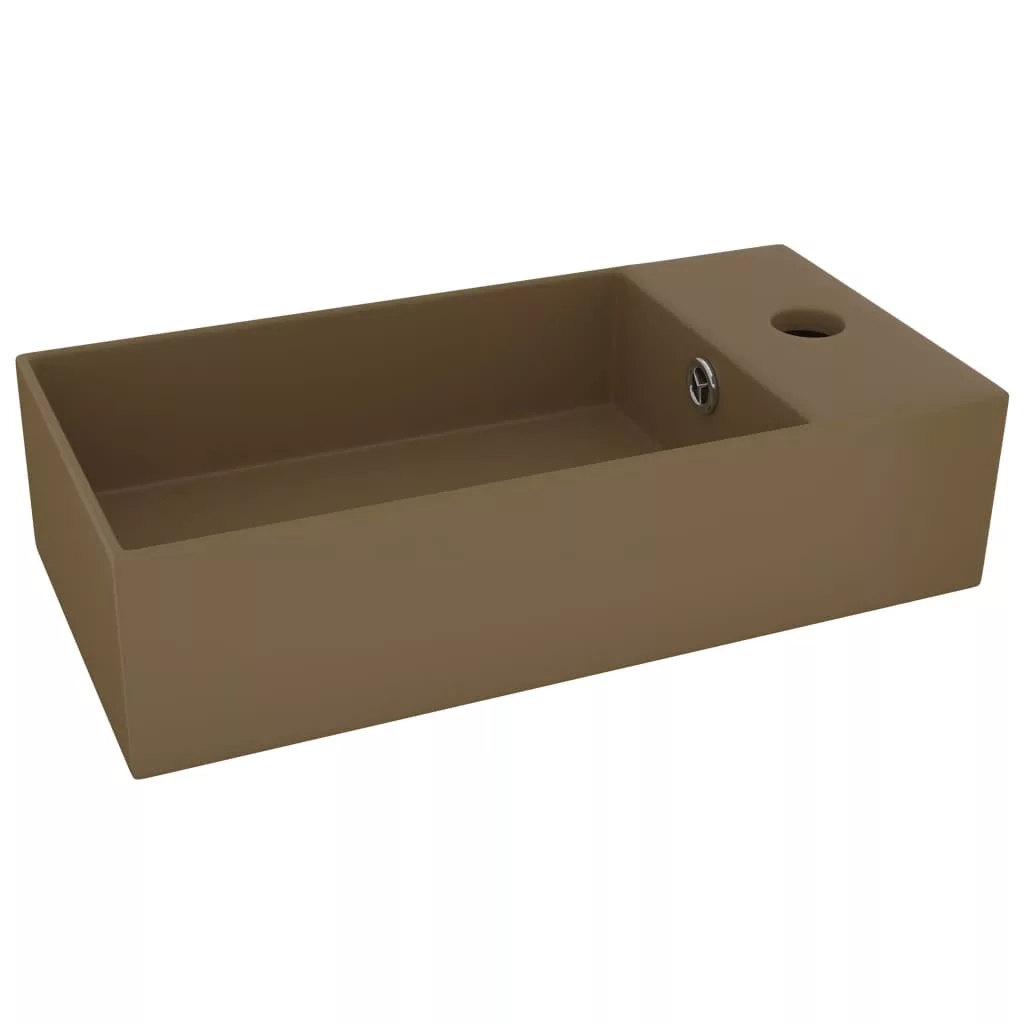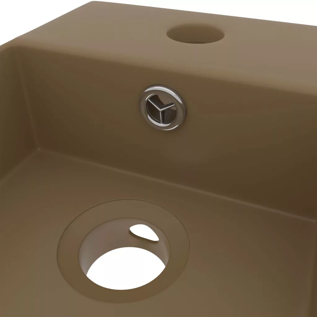matt krémszínű kerámia mosdókagyló túlfolyóval