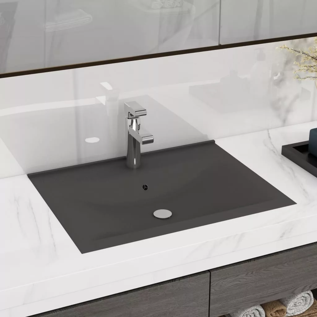 matt sötétszürke kerámia luxus mosdó csaptelepfurattal 60x46 cm