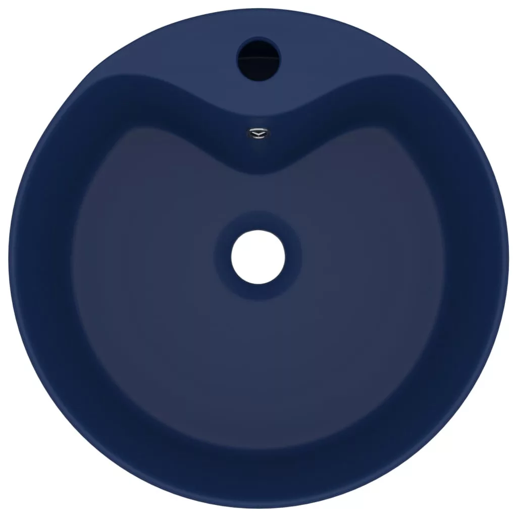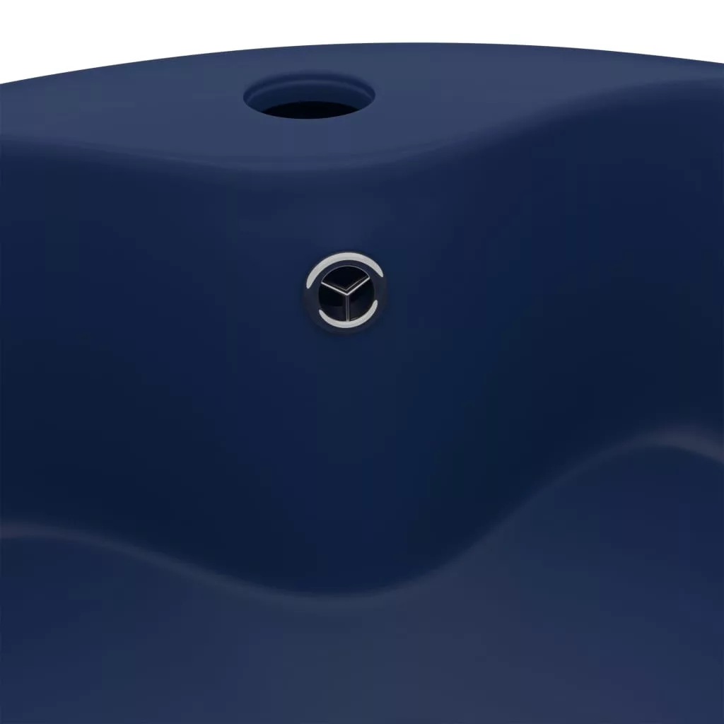 matt sötétkék luxus kerámia mosdókagyló túlfolyóval 36x13 cm