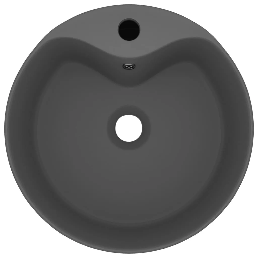 matt sötétszürke luxus kerámia mosdókagyló túlfolyóval 36x13 cm