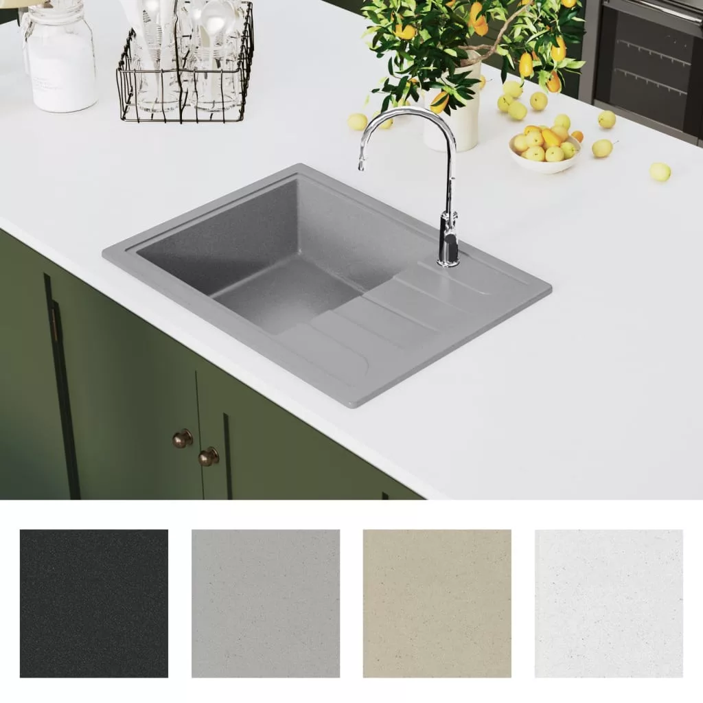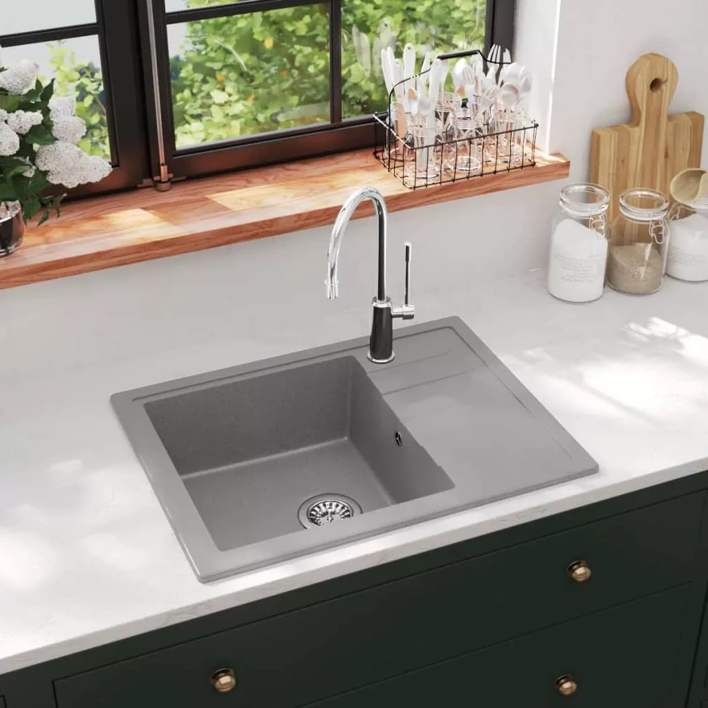 Ez a gránit konyhai mosogatótálca konyhája időtlen kiegészítője lesz. Egy extra mély mosdókagylóval és letisztult dizájnnal rendelkezik. A mosogató gránitból készült, így hő-, karcolás- és ütésálló, valamint könnyen tisztítható. Az oldalsó lefolyó extra helyet biztosít az edényeknek. Mivel a mosogató teljesen megfordítható, a medence balra vagy jobbra is helyezhető. A mosogató szűrőt is tartalmaz a hulladékok egyszerű eltávolításához. A lefolyó átmérője 90 mm. Ez a konyhai mosogatótálca felső beépítésre alkalmas. A gyermekeket felügyelni kell, hogy ne játsszanak a készülékkel. Tartsa távol a gyerekeket az összeszerelési területtől. Figyelem: Használat előtt figyelmesen olvassa el az utasításokat, és őrizze meg további hivatkozás céljából.