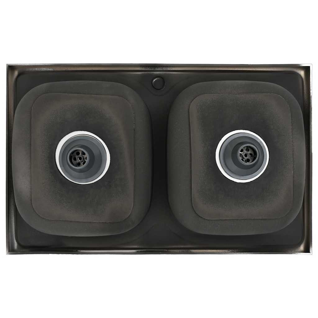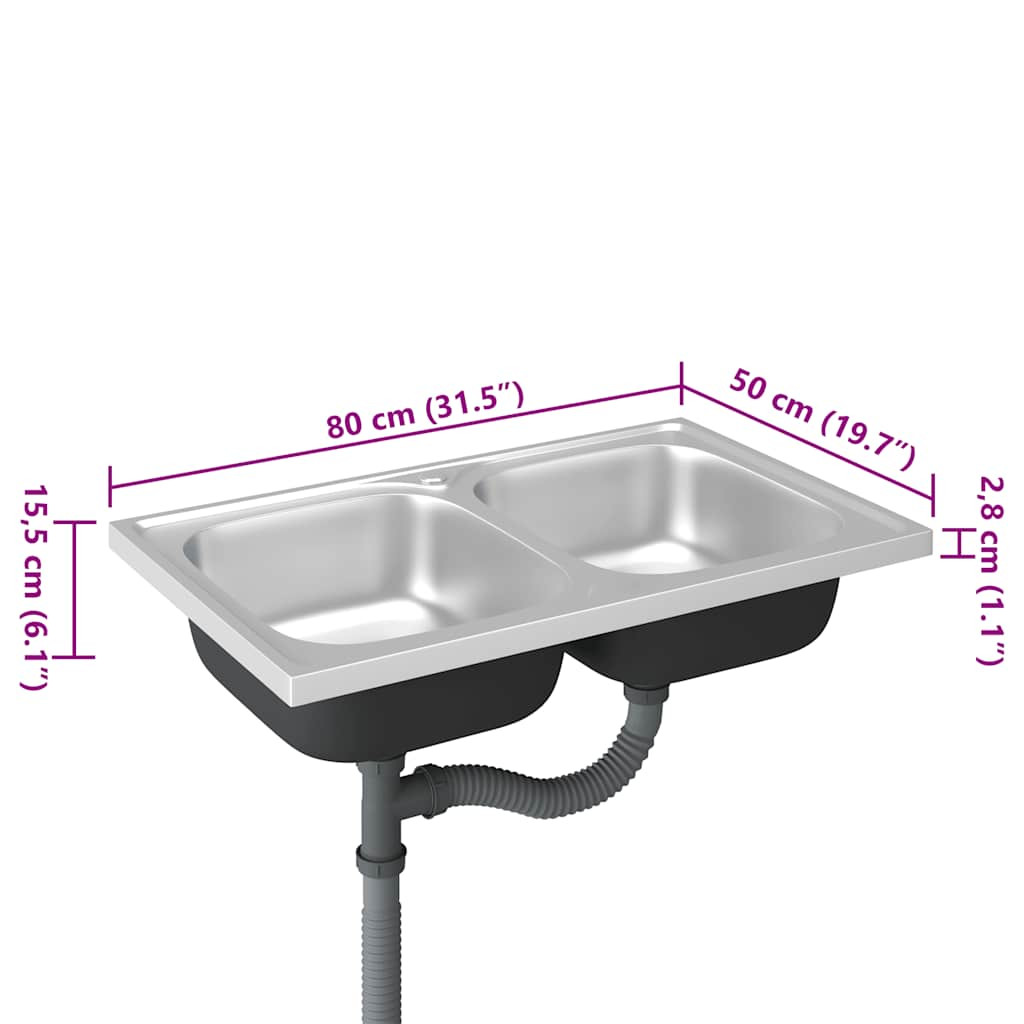 ezüst rozsdamentes acél dupla konyhamosogató 800 x 500 x 155 mm