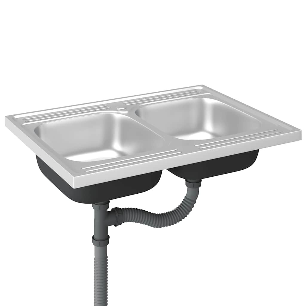 Ez a dupla medencével és lefolyókészlettel ellátott mosogató ideális kiegészítője a meglévő konyhai dekorációnak. Tartós anyag: Ez a mosogató rozsdamentes acélból készült, így hőálló, karcolás- és ütésálló.Könnyen tisztítható: A mosogató sima felületének köszönhetően könnyen tisztítható és kevesebb karbantartást igényel.Helytakarékos: A mosogató szekrényre helyezhető, a medence oldalsó lefolyóval is rendelkezik, így további helyet biztosít az edények számára.Megfordítható kialakítás: Ez a mosogató megfordítható, és a sokoldalú konfiguráció érdekében a medence bal vagy jobb oldalára is felszerelhető.Gyakorlati tervezés: A csaptelep mindkét furatba beszerelhető, így a beállítások alapján kiválaszthatja a legkényelmesebb lehetőséget. Jó tudni:A szállítás csak egy mosogatót tartalmazott; a szekrény és a lefolyószűrő nem tartozék.A lefolyó a szállításkor fel van szerelve, Önnek szét kell szerelnie, majd újra össze kell szerelnie.