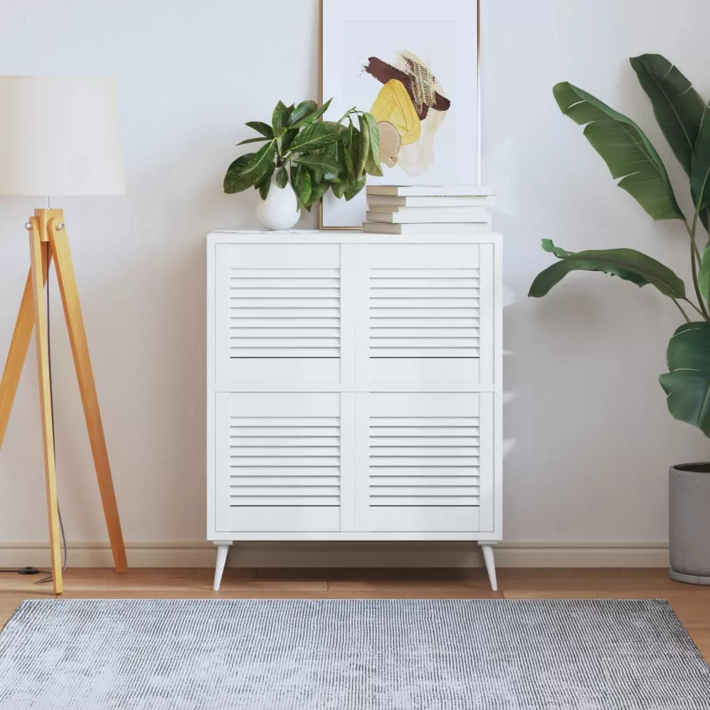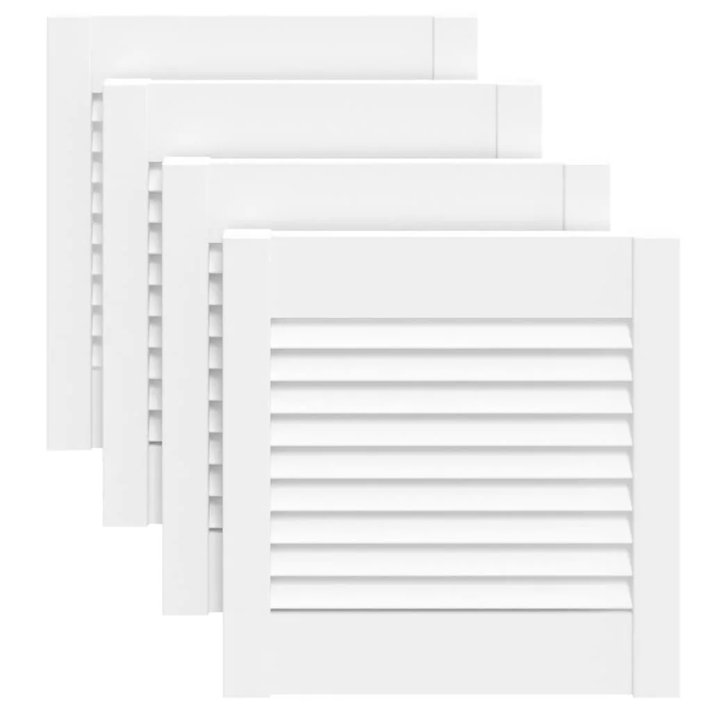 4 db fehér tömör fenyőfa lamellás szekrényajtó 39,5 x 39,4 cm