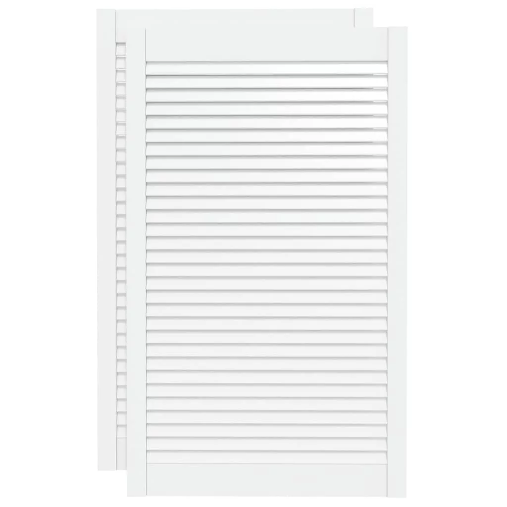 2 db fehér tömör fenyőfa lamellás szekrényajtó 99,3 x 59,4 cm