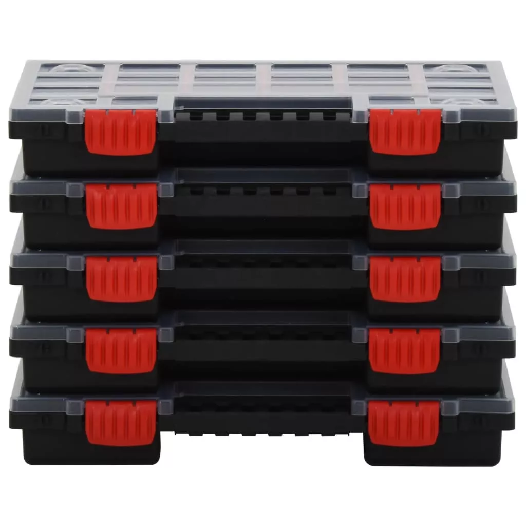 Ez az állítható elválasztókkal ellátott praktikus szortírozódoboz-szett kiváló segítőtárs a garázsban, a műhelyben és máshol! Átlátszó fedél: Az átlátszó fedél lehetővé teszi a belső tartalom áttekintését. Így könnyen felismerheti és megtalálhatja a csavarokat, az anyákat, a szögeket és az egyéb apró alkatrészeket.Állítható elválasztók: Az állítható elválasztókkal ellátott szortírozótok több rekeszre osztható, így mindennek találhat helyet.Széleskörű felhasználás: Ez a praktikus szerszámrendező garantáltan kiváló választás azoknak, akik értékelik a tisztaságot és a rendet barkácsolás közben, de a profiknak is a munkahelyükön.