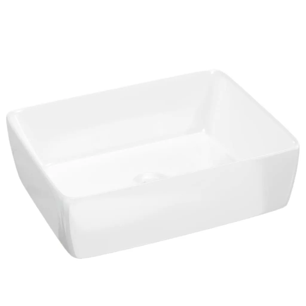 fehér téglalap alakú kerámia mosdókagyló 48x37x13 cm
