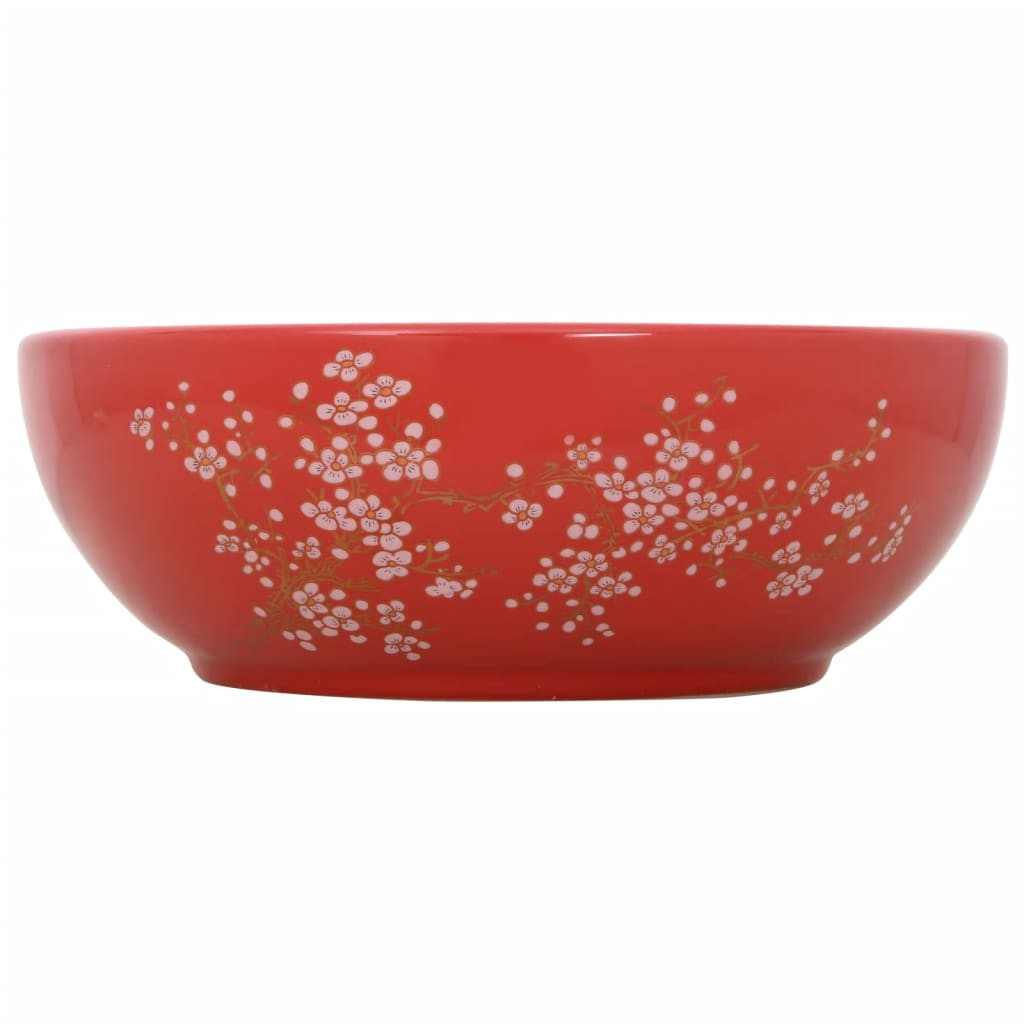 fehér-piros kerámia kerek asztali mosdó Φ41 x 14 cm