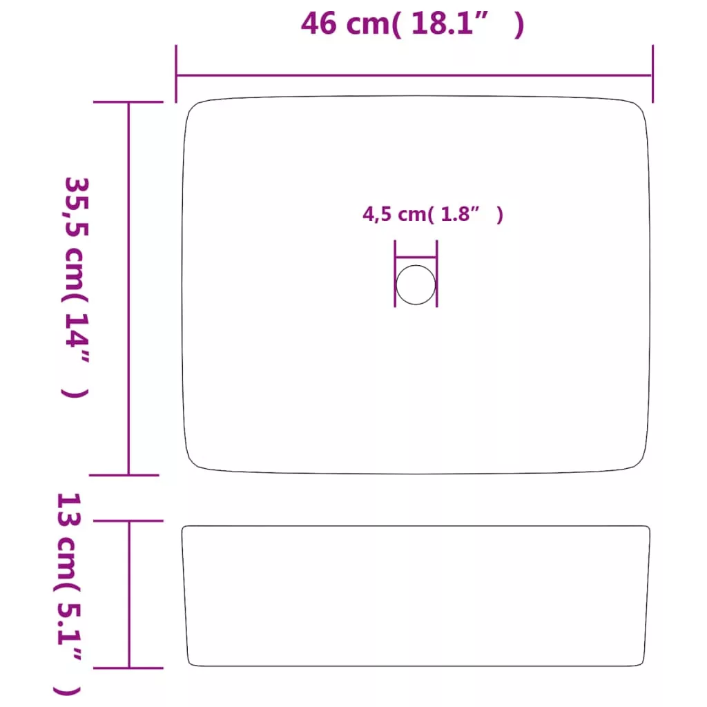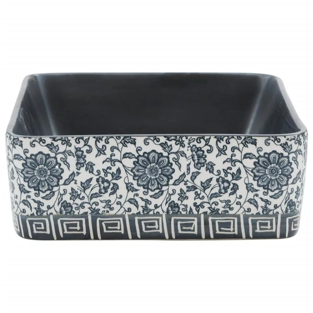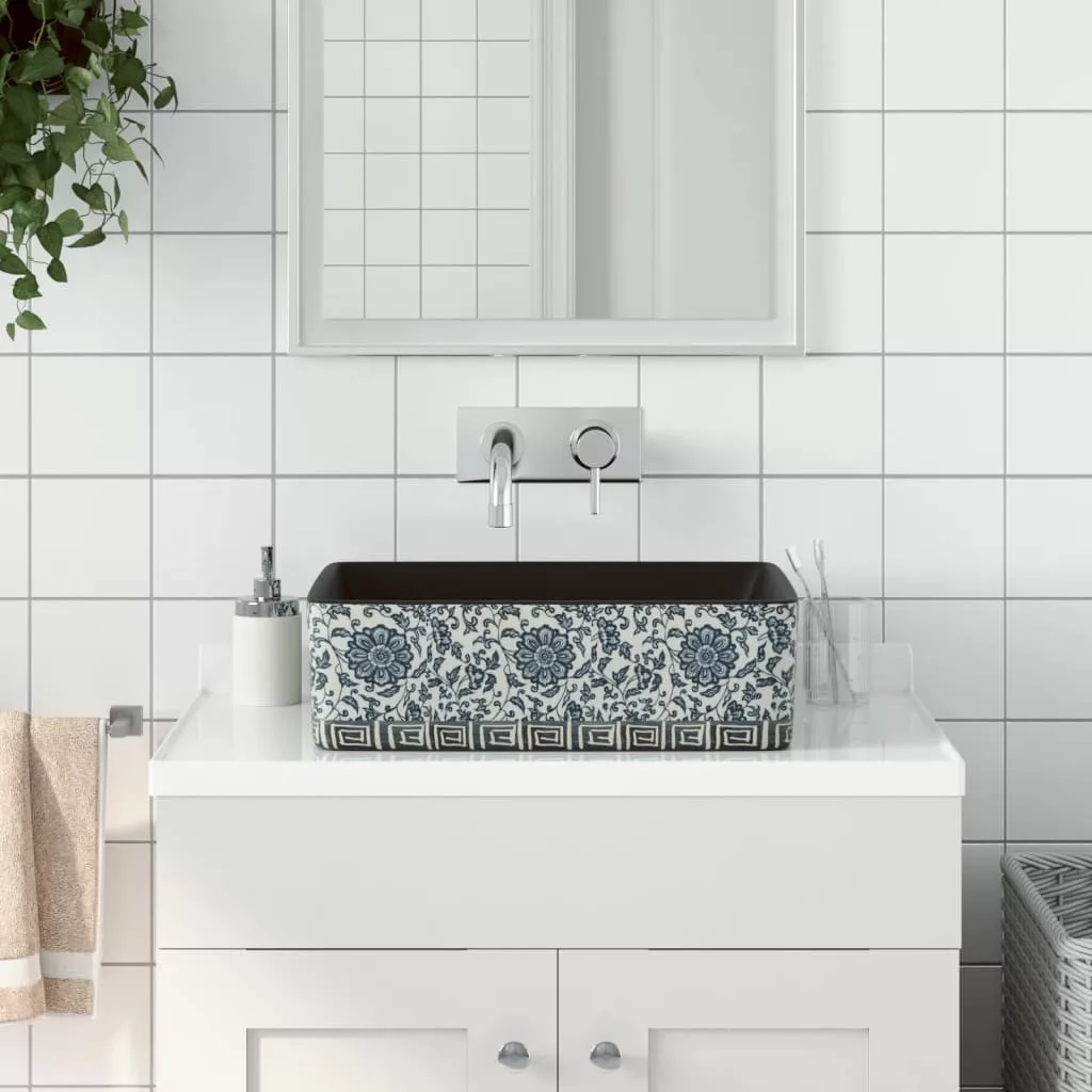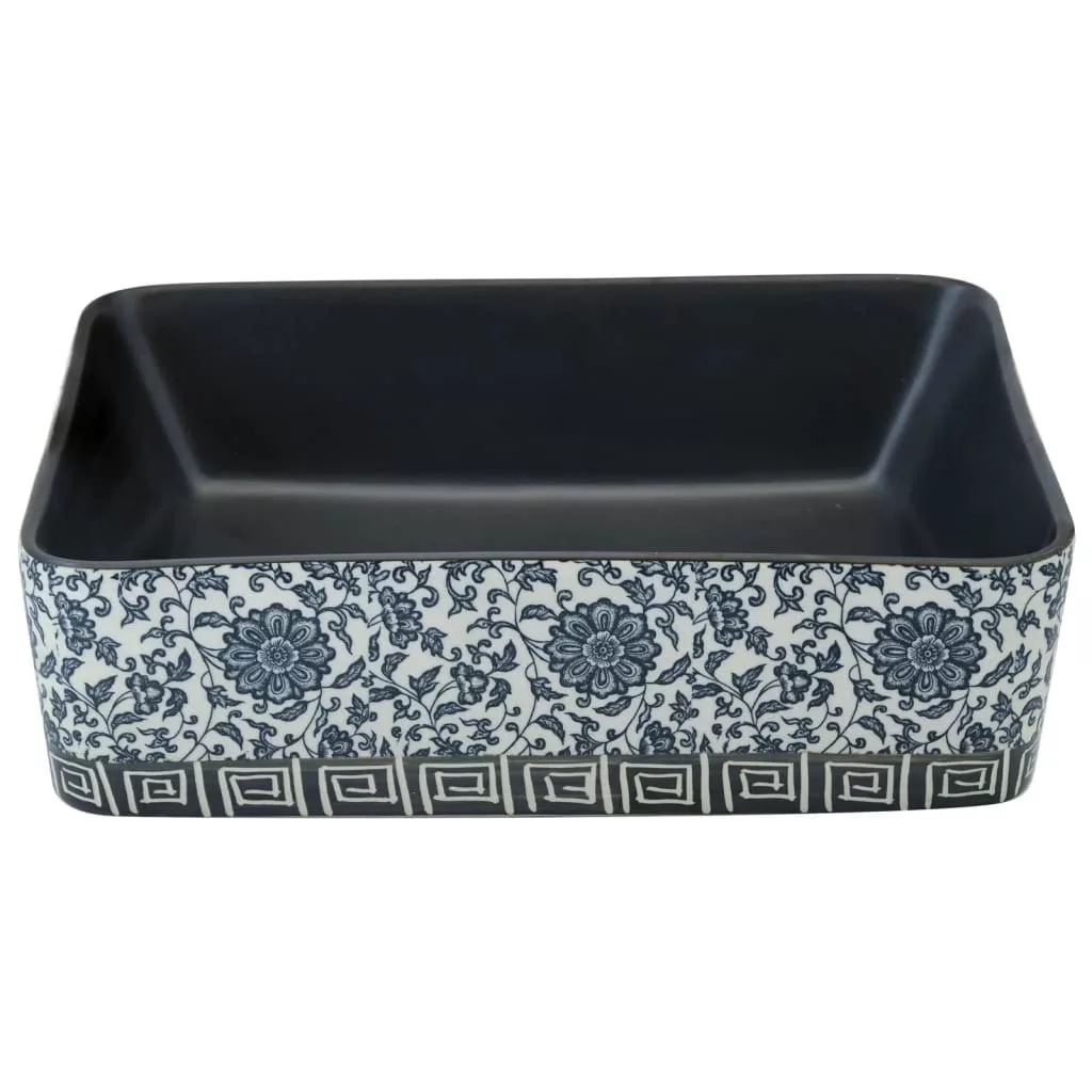 fekete és kék kerámia négyszögletes asztali mosdó 46x35,5x13 cm