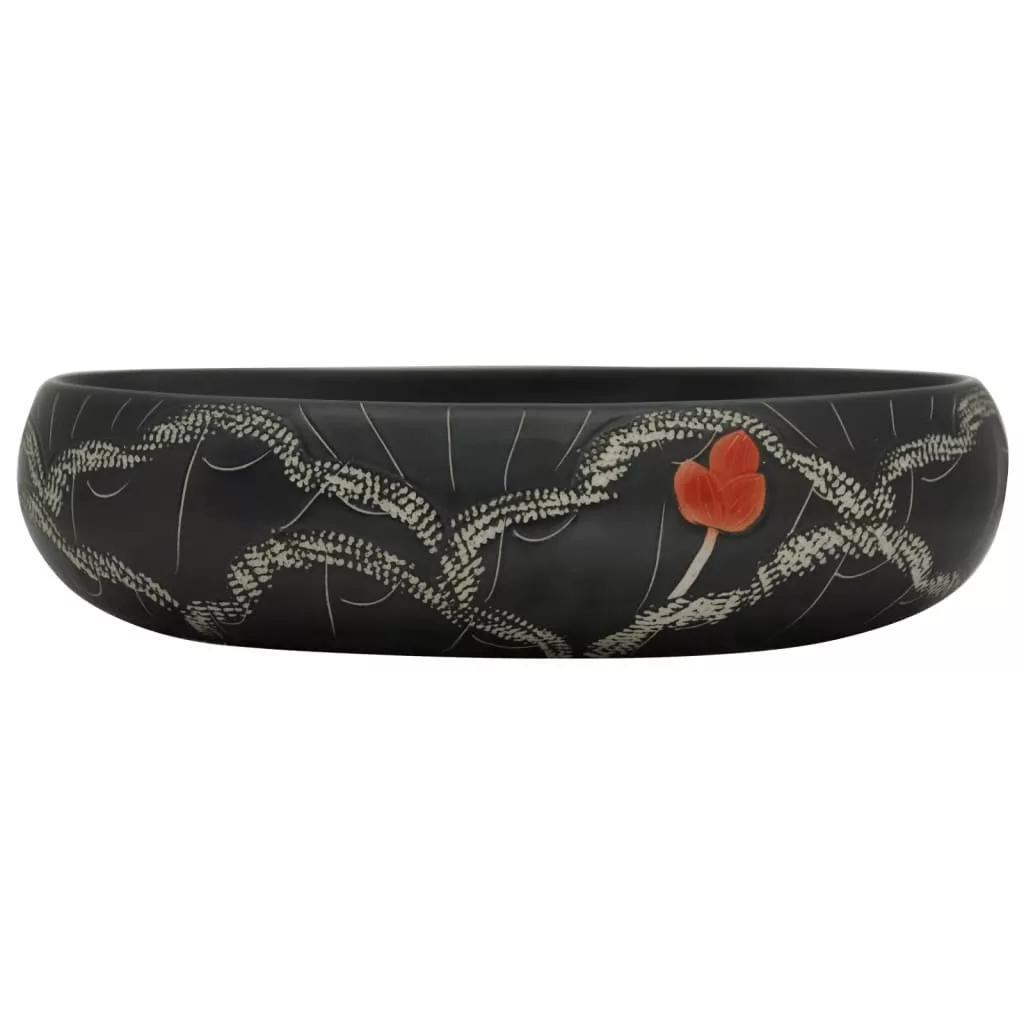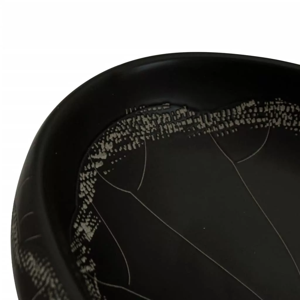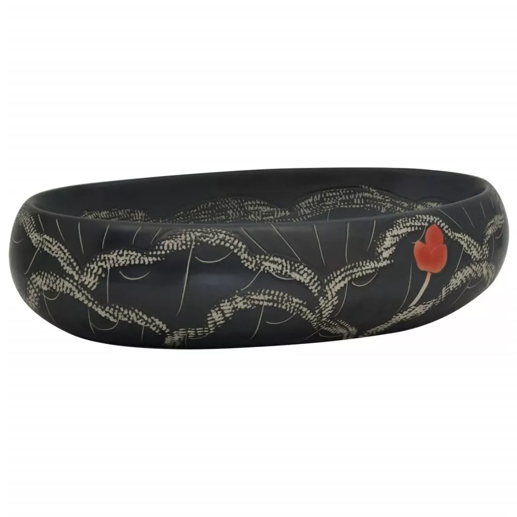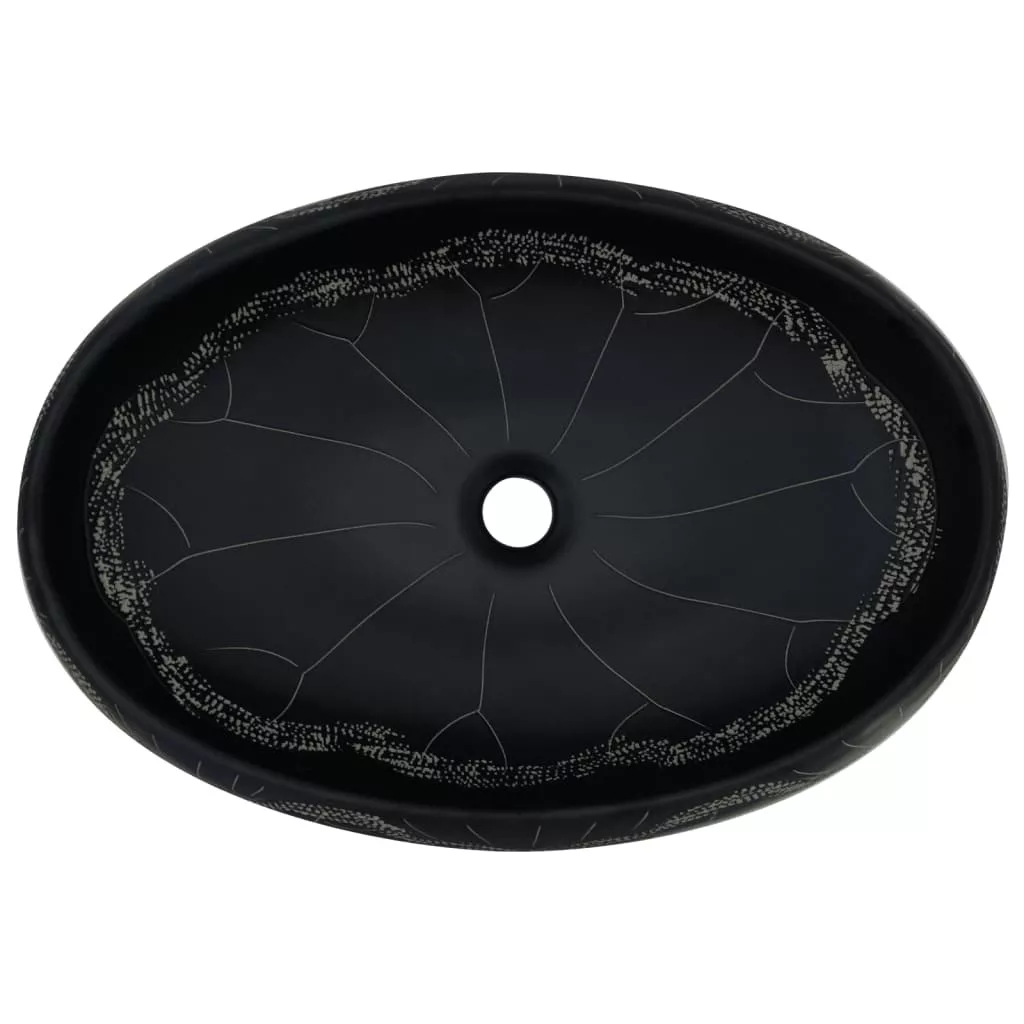 fekete kerámia ovális asztali mosdó 59 x 40 x 15 cm