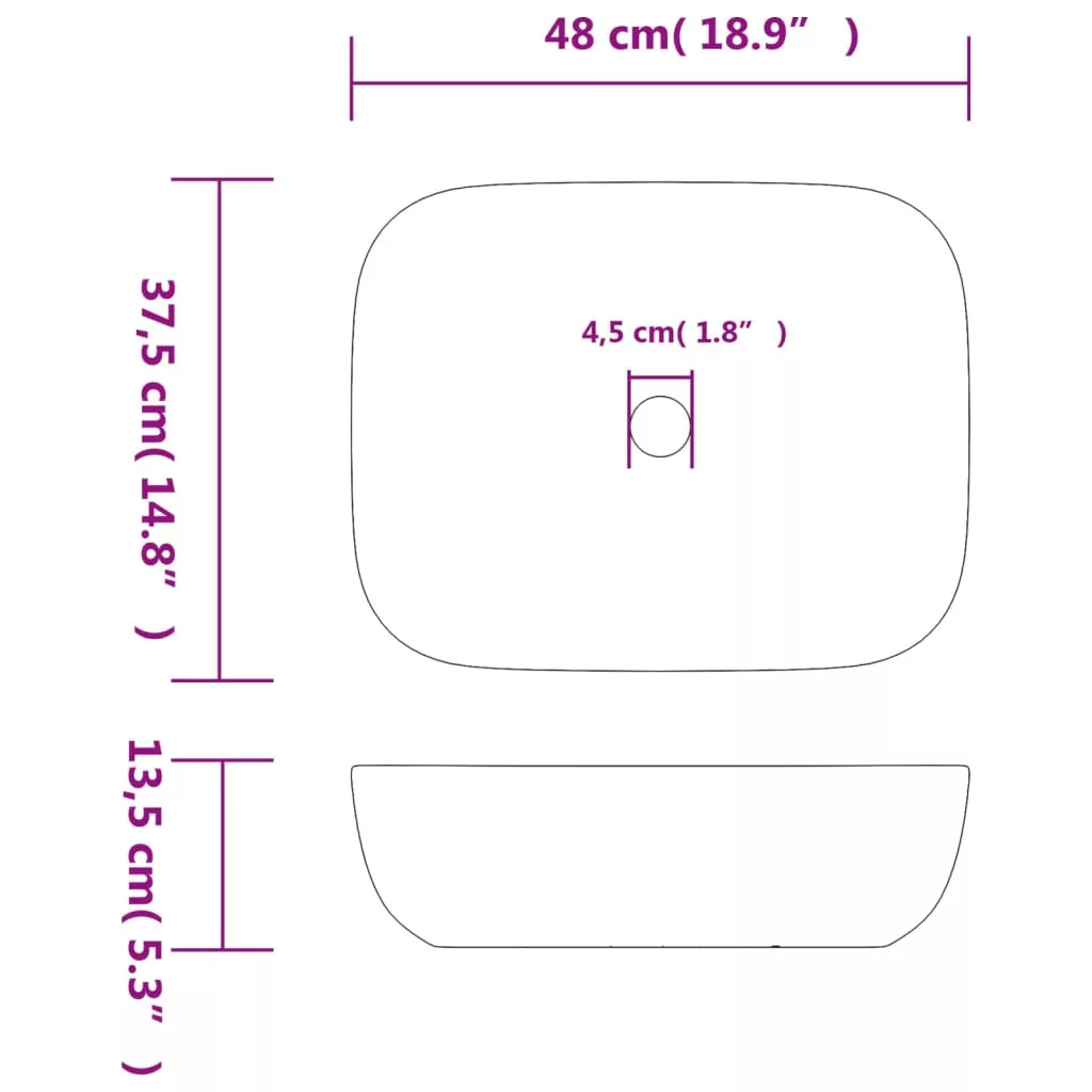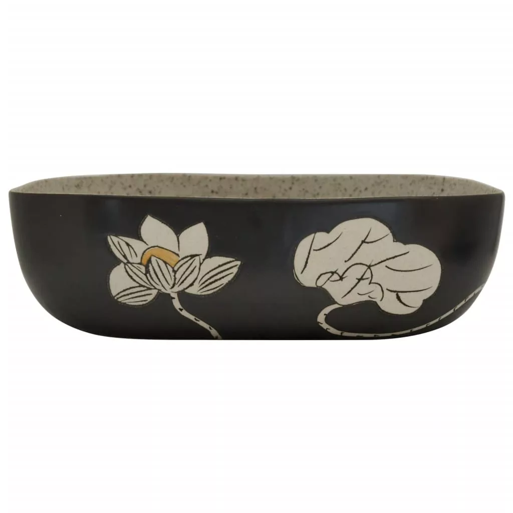 szürke-fekete kerámia négyszögű asztali mosdó 48x37,5x13,5 cm