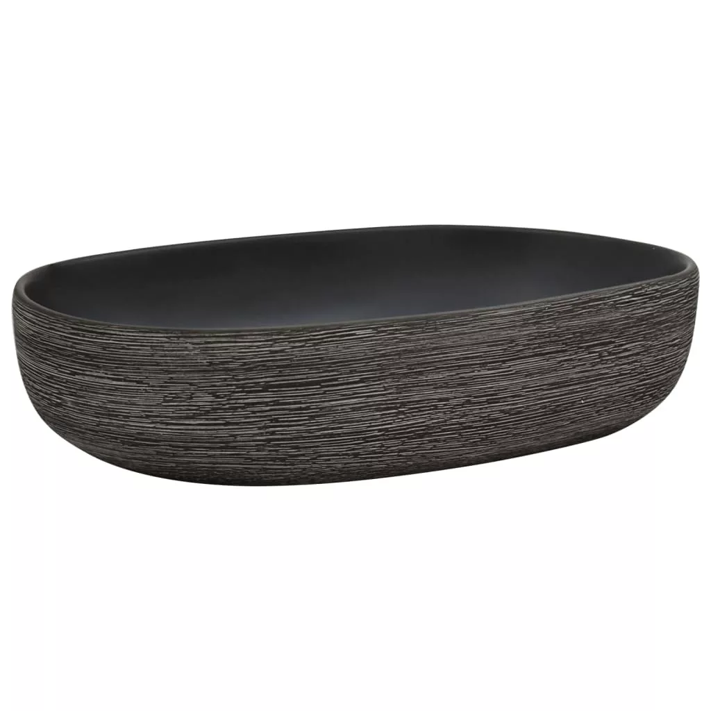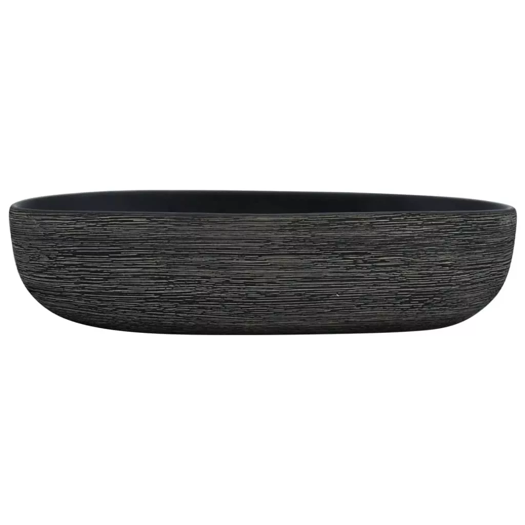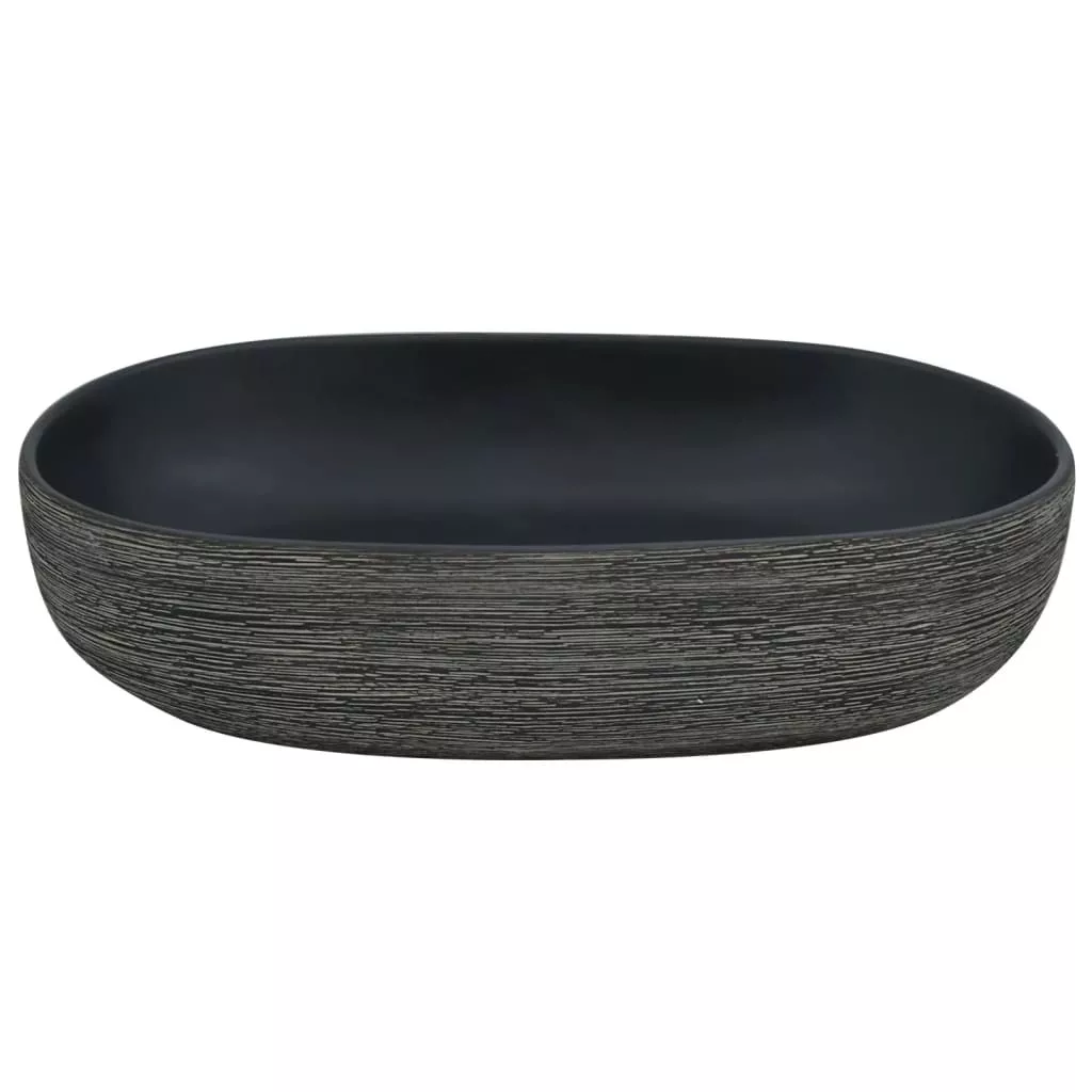 szürke és fekete kerámia ovális asztali mosdó 59 x 40 x 14 cm