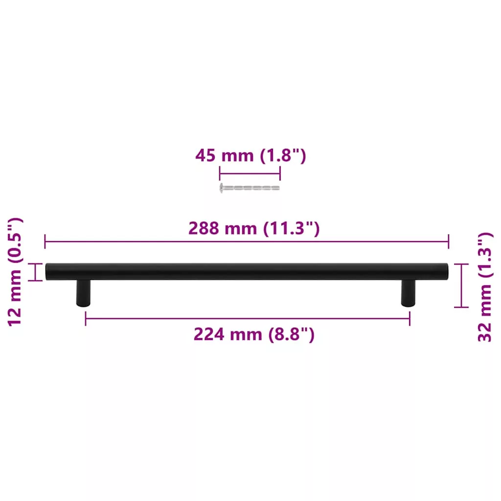 5 db fekete rozsdamentes acél szekrényfogantyú 224 mm
