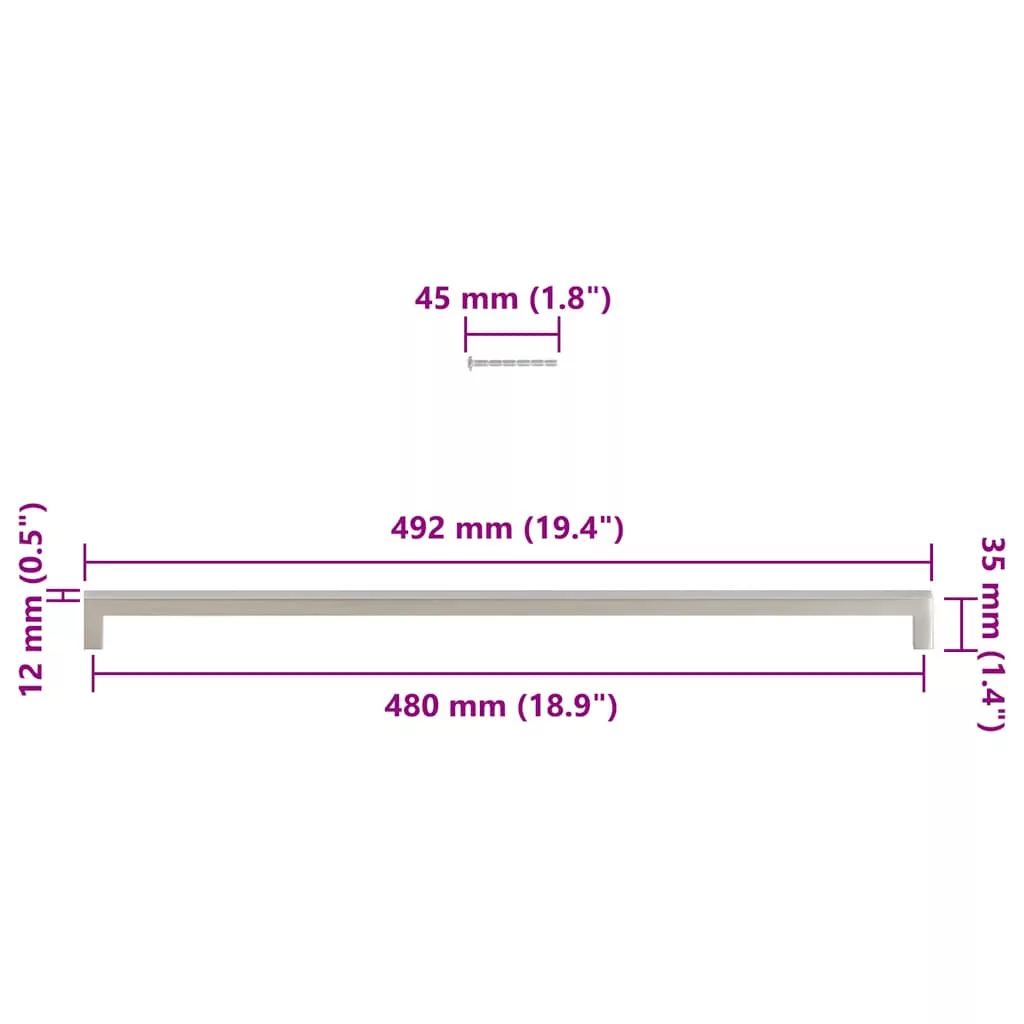 5 db ezüst rozsdamentes acél szekrényfogantyú 480 mm
