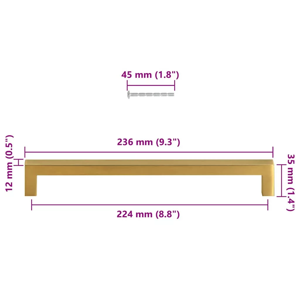 5 db aranyszínű rozsdamentes acél szekrényfogantyú 224 mm