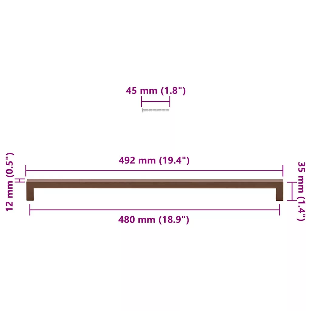 5 db bronz rozsdamentes acél szekrényfogantyú 480 mm