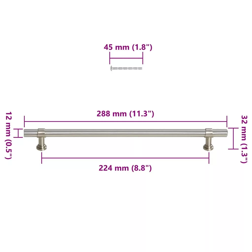 5 db ezüst rozsdamentes acél szekrényfogantyú 224 mm