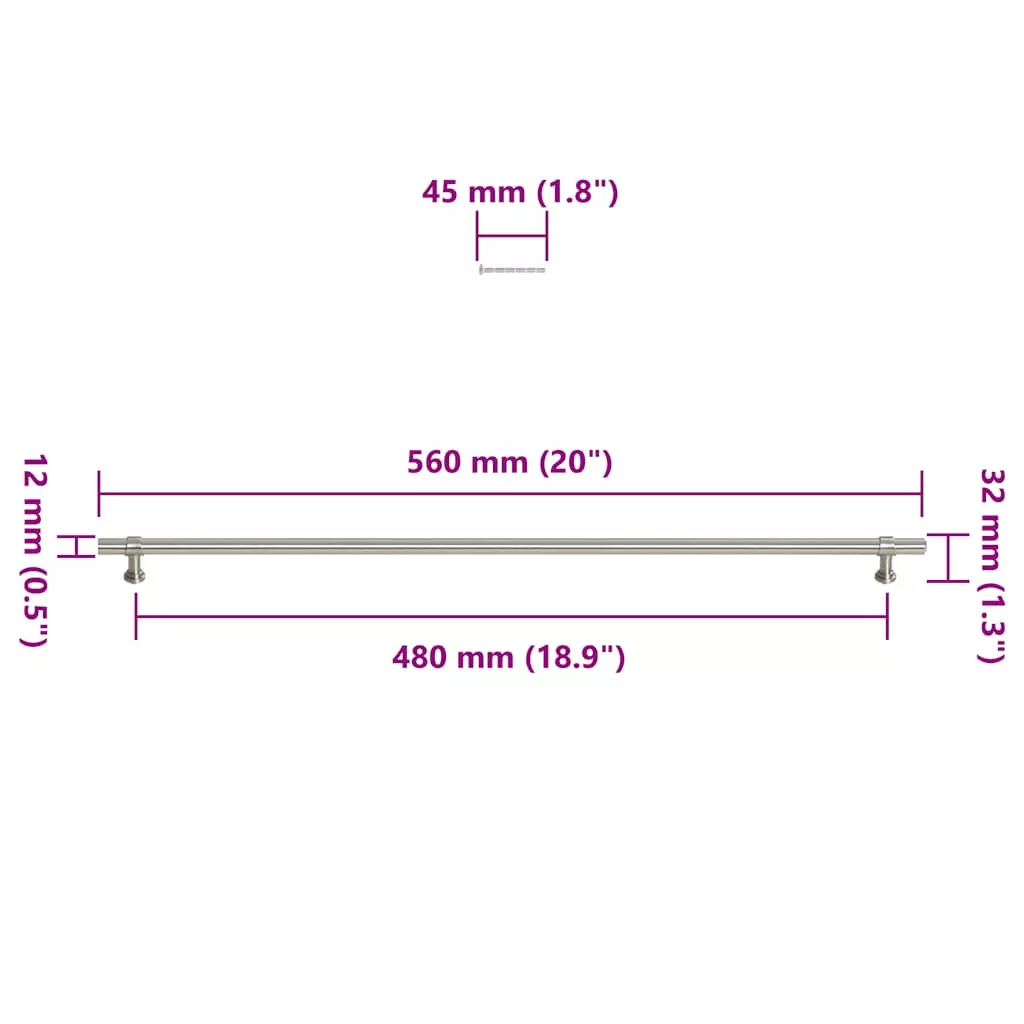 5 db ezüst rozsdamentes acél szekrényfogantyú 480 mm