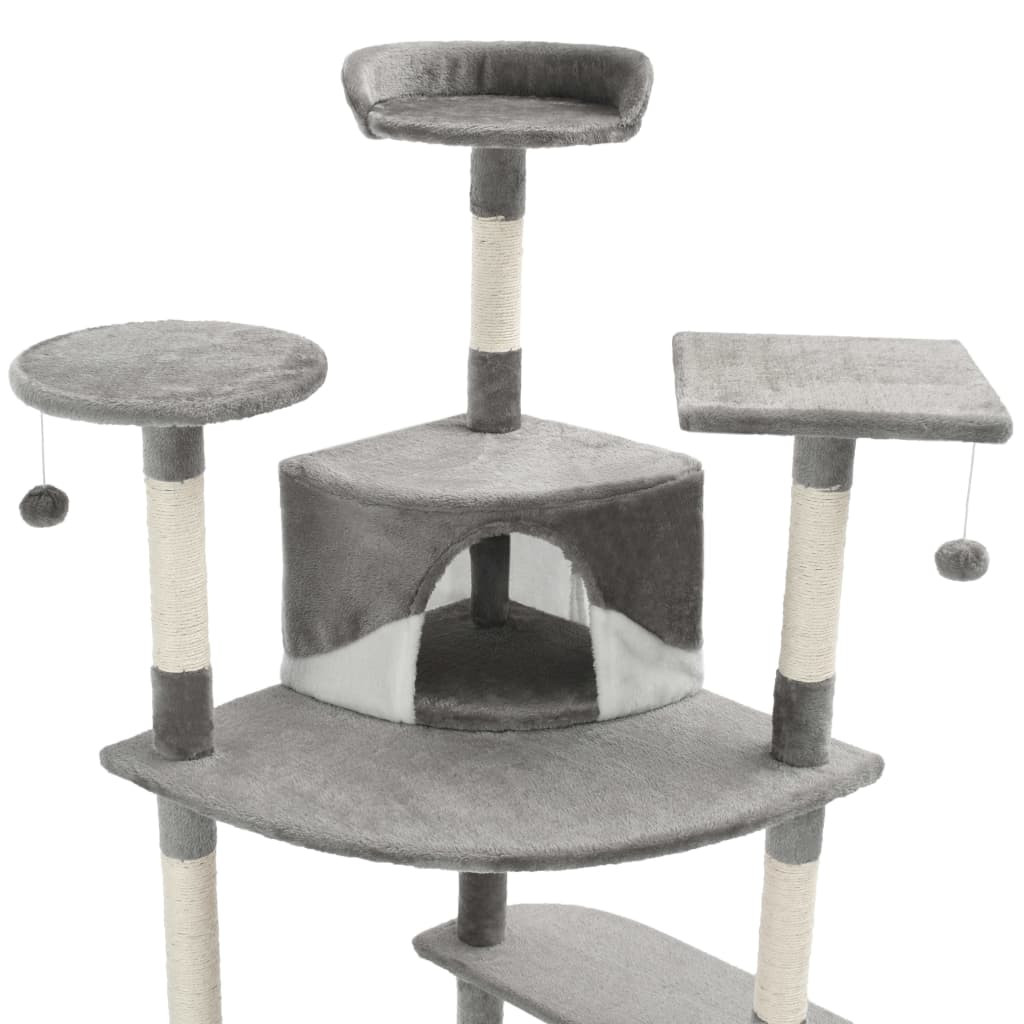 szürke/fehér macskabútor szizál kaparófákkal 203 cm