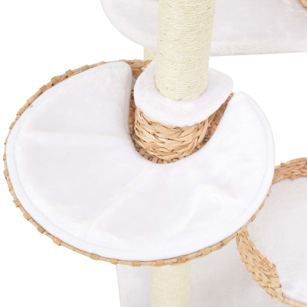 Ezen a kézzel készített macskabútoron macskái kedvük szerint kaparászhatnak, elrejtőzhetnek, mászkálhatnak és lazíthatnak. Aranyos és kompakt kialakításának köszönhetően ez a macskabútor minden otthonba illeni fog. Ez a macska kaparófa nagyszerű lehetőséget kínál kis kedvenceinek, hogy nyújtózzanak vagy edzésben maradjanak, különösen a hideg, téli hónapok során, amikor be vannak zárva a lakásba. A kaparófák kényelmes szizálkötéllel lettek körbetekerve, így amellett, hogy kényelmesek, ideálisak arra, hogy szőrös kis barátai rajtuk élesítsék a karmukat. Macskabútorunk 4 kényelmes fűzfavesszőből font kosárral is rendelkezik, ahol cicája szundíthat vagy lazíthat egy jót. Emellett levehető párnák is találhatóak rajta, melyeken macskája kényelmesen elfekhet. A tengerifűből készült macskabútor egyszerűen összeszerelhető és karbantartható.