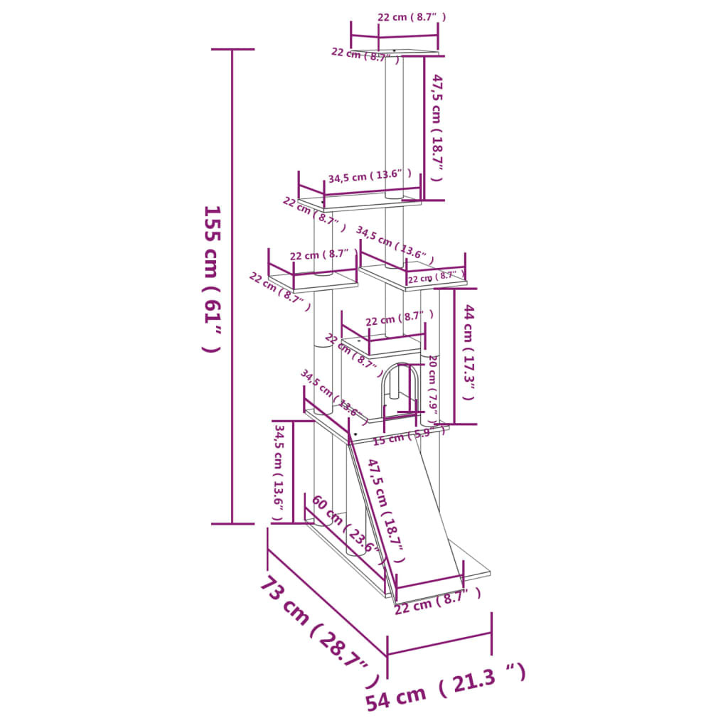 Rámpával, házzal, kaparófákkal és emelvényekkel
