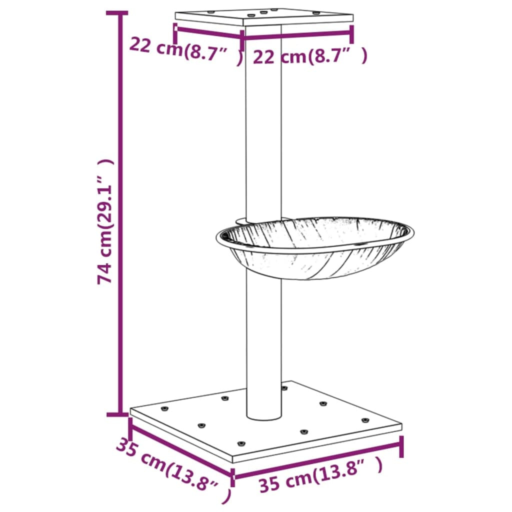 sötétszürke macskabútor szizál kaparófával 74 cm