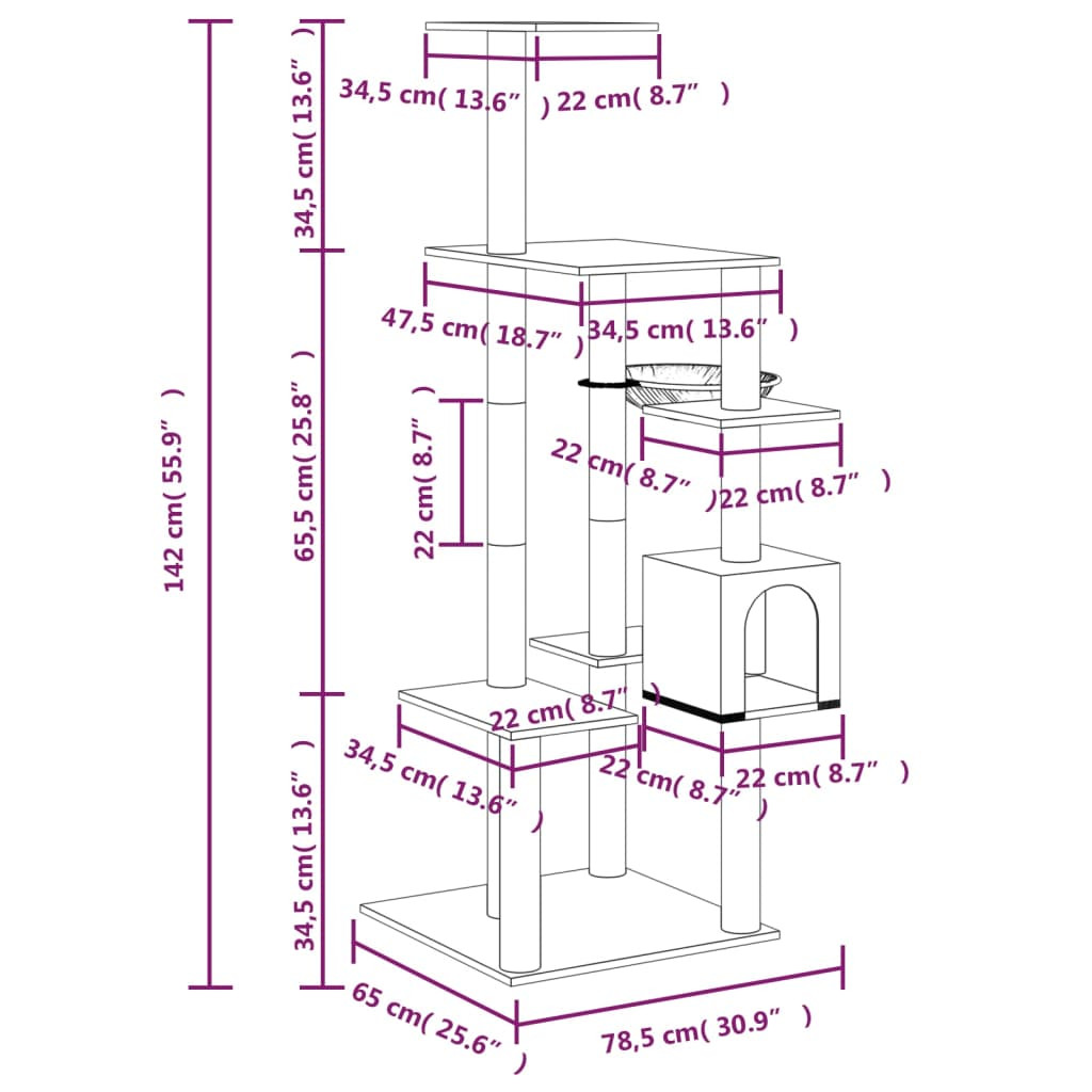 krémszínű macskabútor szizál kaparófákkal 142 cm