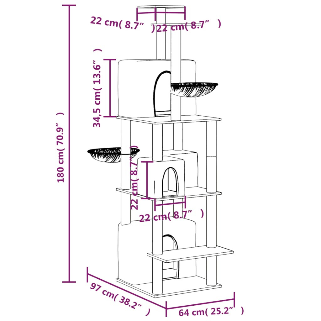 világosszürke macskabútor szizál kaparófákkal 180 cm