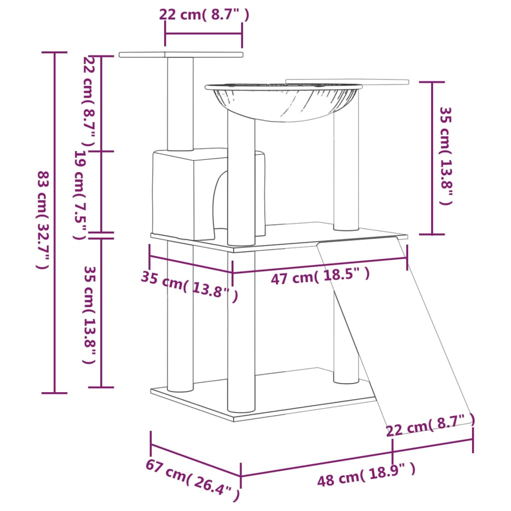 Legyen határtalan szórakozásban részük szeretett cicáinak ezzel az univerzális macskakaparó fával! Minden egyben macskatorony: A többszintes macskabútor 1 házzal, 1 függőággyal, 1 létrával és emelvényekkel lett ellátva, tökéletes helyet biztosítva macskáinak a mászáshoz, kaparáshoz, bujkáláshoz és pihenéshez.Puha plüss anyag: Az extra vastag és puha plüss jól szellőzik, karcálló, rendkívül kényelmes és meleg.Tartós szizáloszlopok: A kaparófa rugalmas és erős, természetes szizáloszlopai tökéletesek szeretett macskái számára, hogy kielégítsék kaparóösztönüket, és ne a bútorait karcolják meg. Megjegyzés:Az egyszerű összeszerelés érdekében minden termékhez mellékelünk összeszerelési útmutatót.