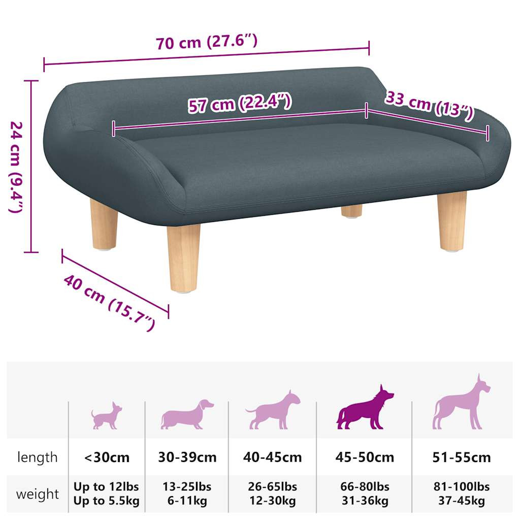 Ajándékozza meg bundás kedvencét egy meleg és kényelmes pihenőhellyel: ezzel a kutyaággyal! Kényelmes és puha anyag: A kisállat kanapé vastag és puha habbal lett kipárnázva és szövet borítja, amely elegendő támaszt és kiváló kényelmet biztosít szeretett állatkájának, hogy pihenjen rajta.Masszív és tartós váz: A tömör fenyőfa váz biztosítja a kutyakanapé szilárdságát és tartósságát. A négy tömör fa láb tovább növeli a stabilitást.Stílusos dizájn: Ez a kutyakanapé tökéletesen illeszkedik bármilyen lakberendezési témához, és nagyszerű kiegészítője lehet nappalijának vagy hálószobájának. Megjegyzés:Kérjük, vásárlás előtt mérje meg kedvence testhosszát. Ne helyezze ezt a terméket ablak közelébe, mivel a gyermek lépcsőként használhatja, és ezáltal a gyermek ki eshet az ablakon; Legyen tudatában a nyílt tüzek és egyéb erős hőforrások kockázatának a termék közelében; Ne helyezze ezt a terméket ablak közelébe, ahol a rolók vagy függönyök zsinórjai megfojthatják a gyermeket. Az összeszerelést kizárólag egy kompetens felnőtt végezheti. Az összeszerelés során a gyermekeket távol kell tartani a terméktől, mivel a sérülés kockázata fennállhat. Ne használja a terméket, ha bármelyik alkatrész törött, szakadt vagy hiányzik. Rendszeresen ellenőrizze az összes rögzítést, hogy biztosítsa azok megfelelő meghúzását.