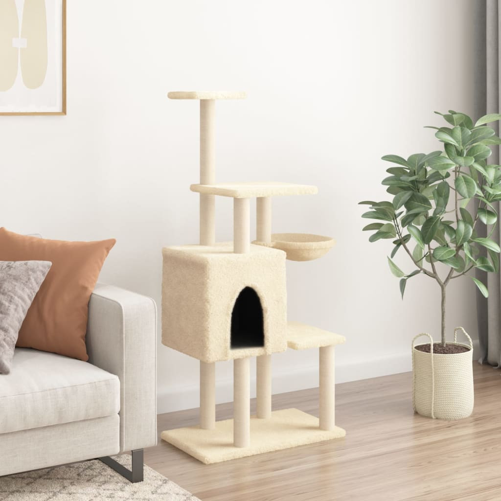 krémszínű macskabútor szizál kaparófákkal 131 cm