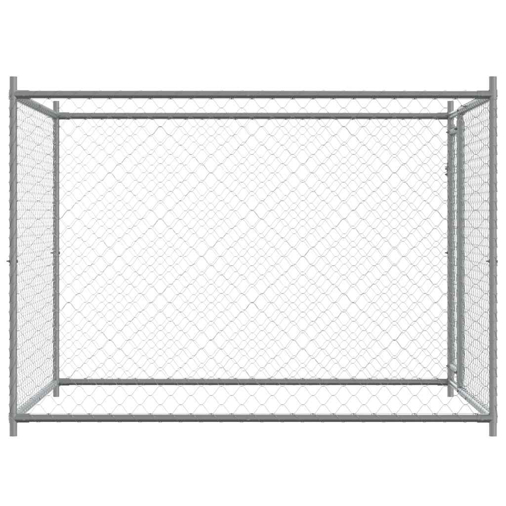 szürke horganyzott acél kutyaláda tetővel és ajtóval 2x2x1,5 m