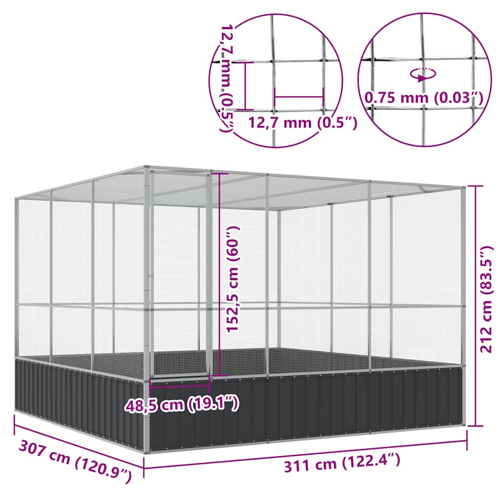 ezüstszínű acél madárház 311 x 307 x 212 cm