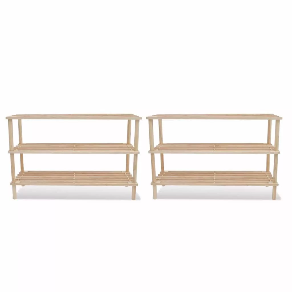 2 db 3-szintes tömör fenyőfa cipőpolc